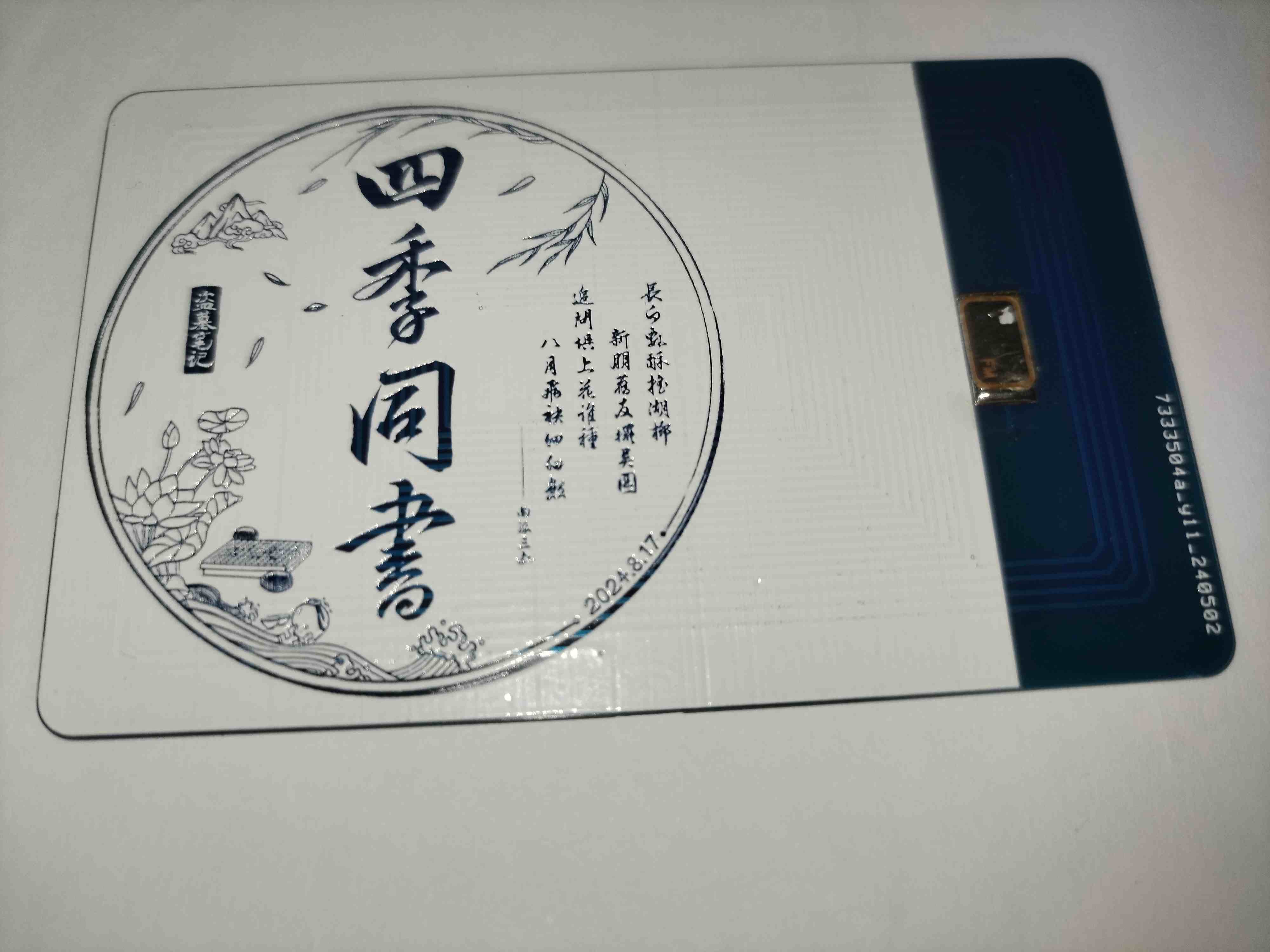 正面麒麟眼睛发光背面稻米节头像,建议pcb下单时选择蓝色厚度1.0,可以把原来的IC卡芯片焊上去改公交卡,成都地铁测试可用