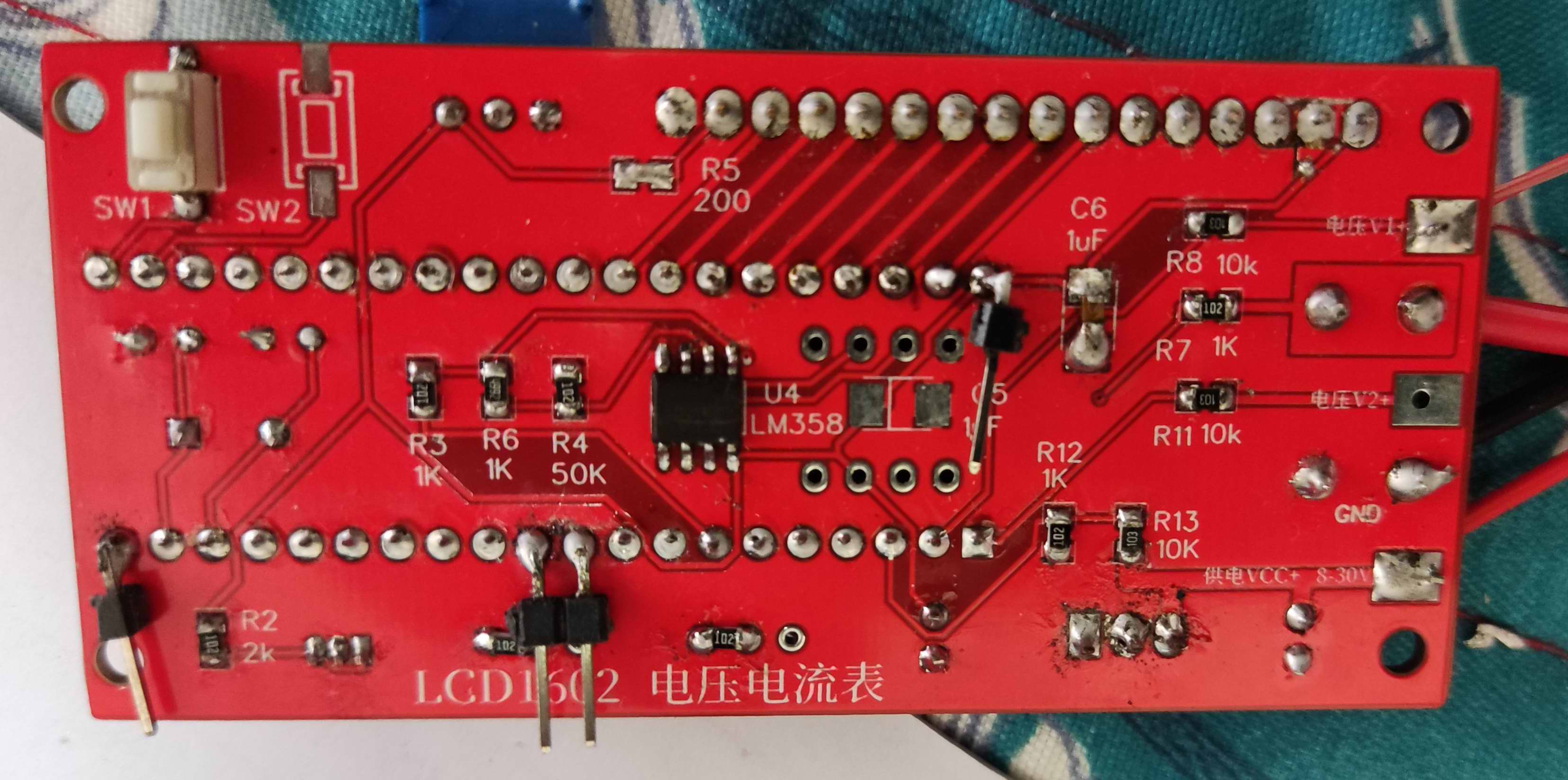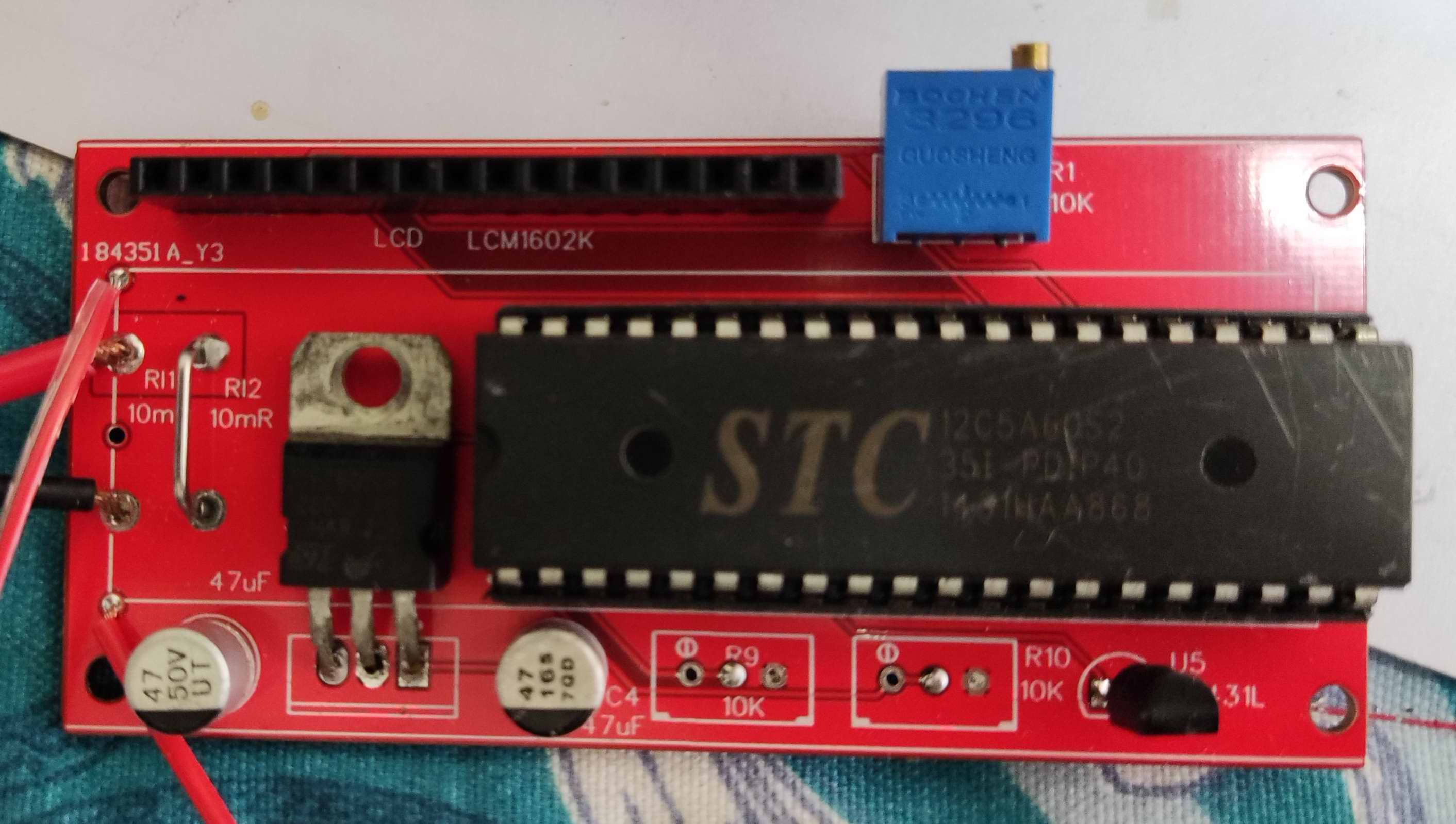 用普通现有的库存元件,常见的STC12C5A60S2单片机,还有拆机的LM358作为电流采样放大。内部的10位AD转换器,用LCD1602显示器显示。