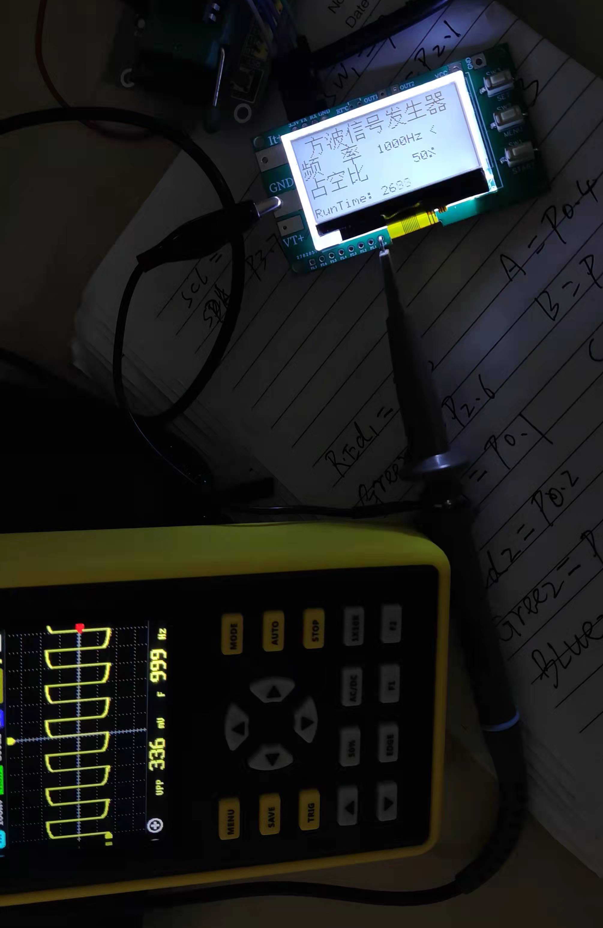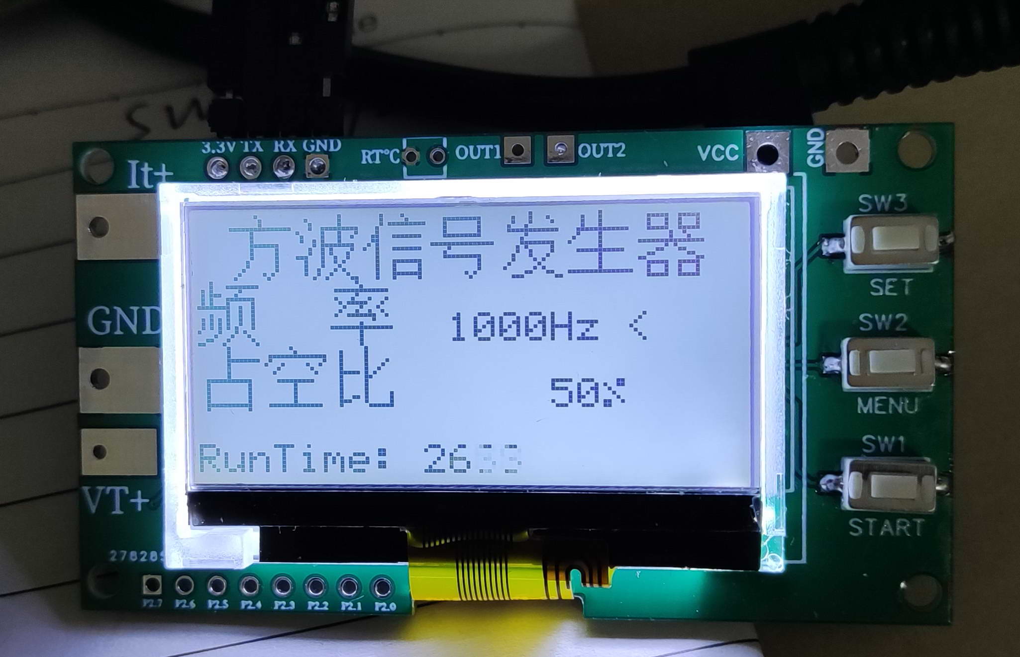 为了不浪费,根据STC8H芯片的例程,加了个方波发生器模块,按SW3可以进入,在P2.0 端口可以输入100-65000HZ的可以频率占空比的方波信号。按SET键在频率与占空比之间选择设置。长按SW3退出。