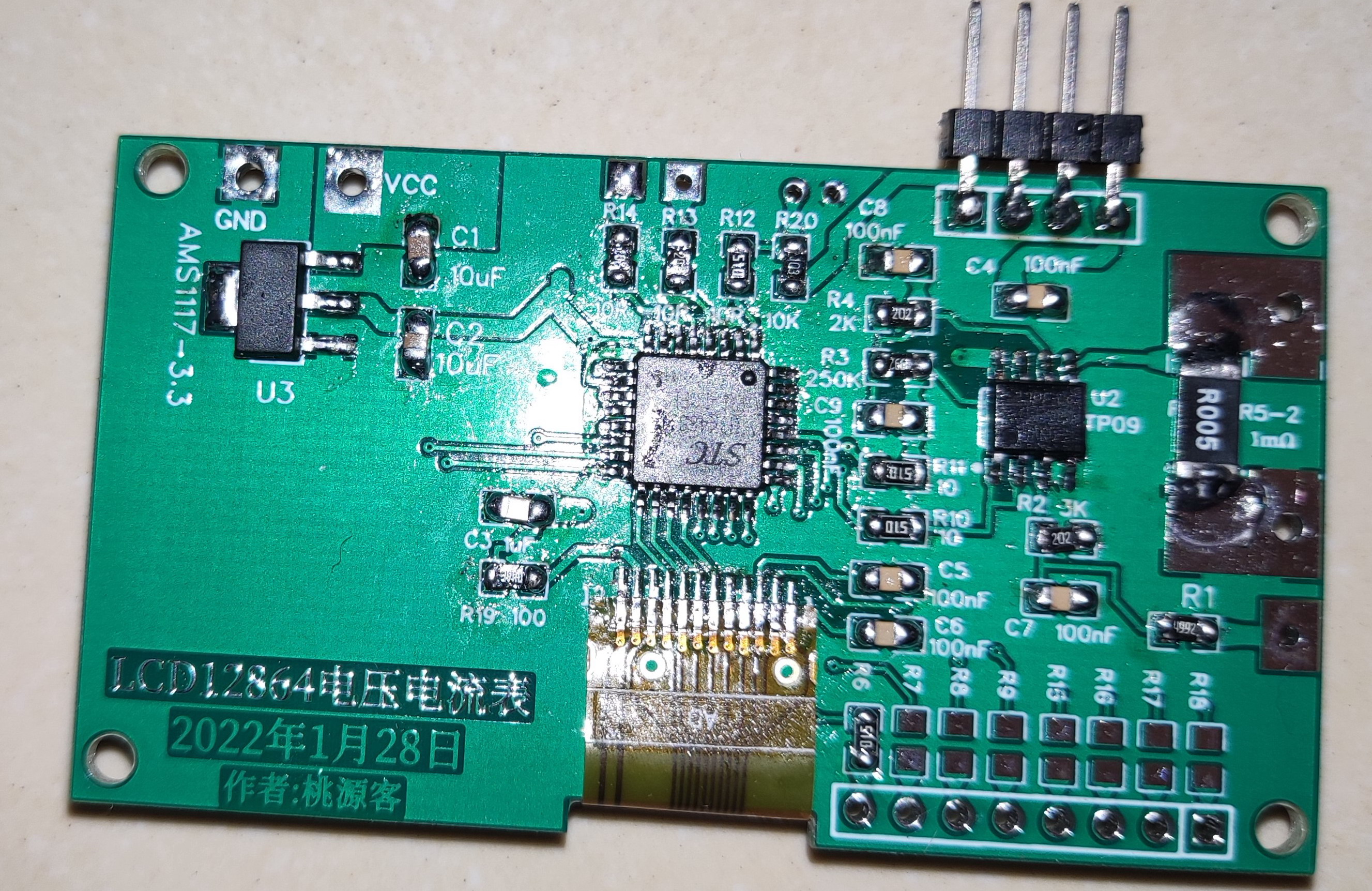 用12位adc的增强型stc8H3K单片机驱动的电压电流表。选用2元钱的2寸带背光的 POS机12864LCD屏。总的成本在10元左右。