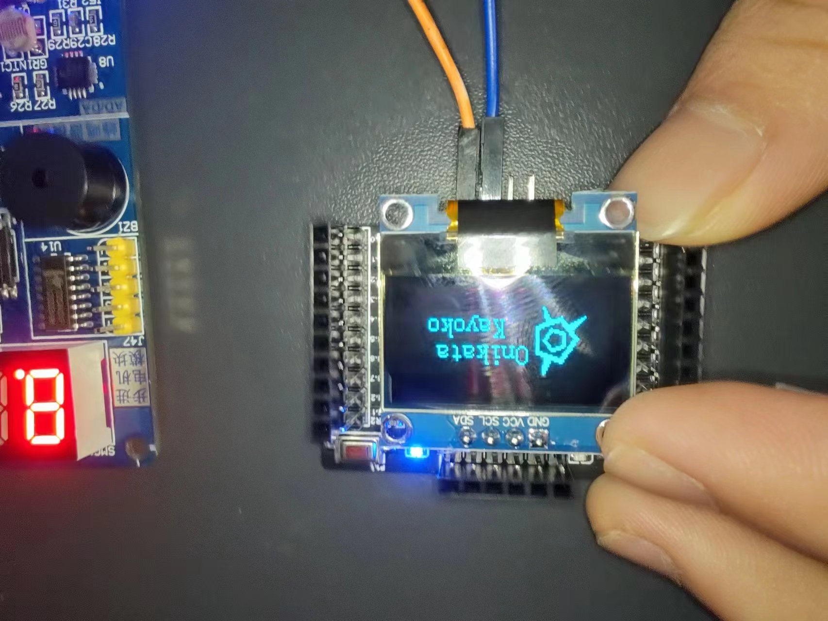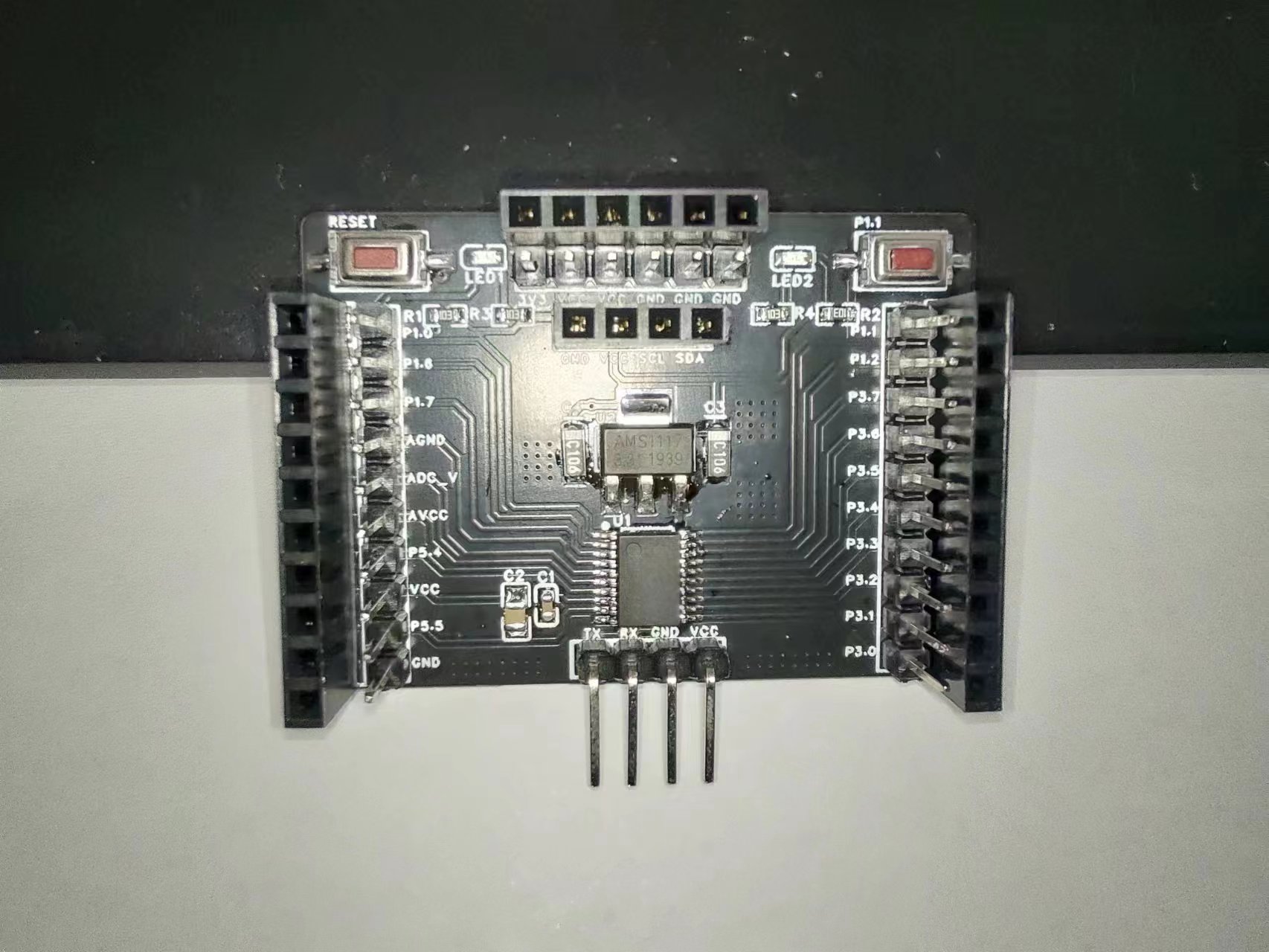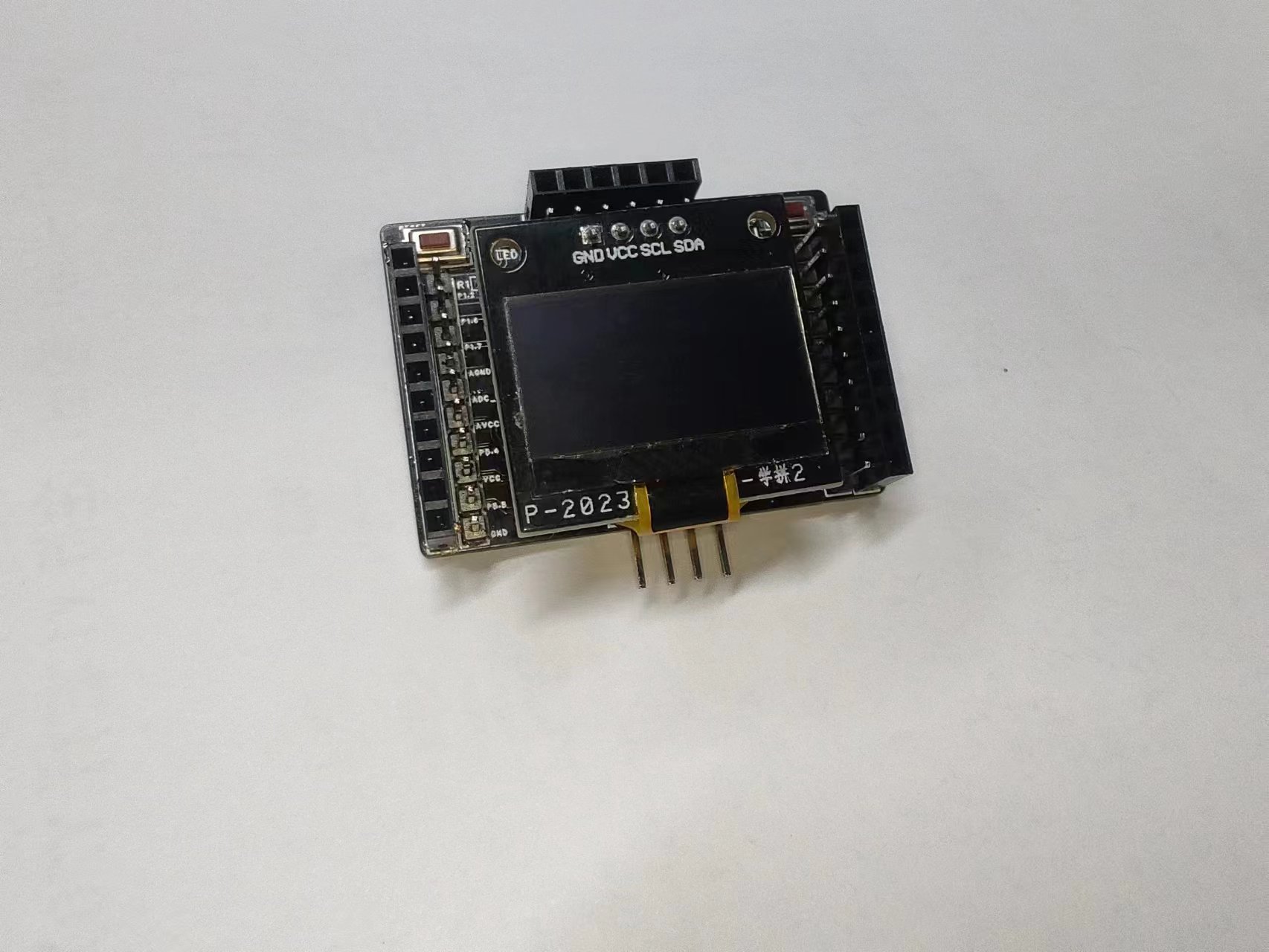 - 板载IIC屏幕母座(0.96寸)--GND开头--对引脚再插(如果是VCC开头可以自行调换)并且精确测量与其他端口距离--互不冲突