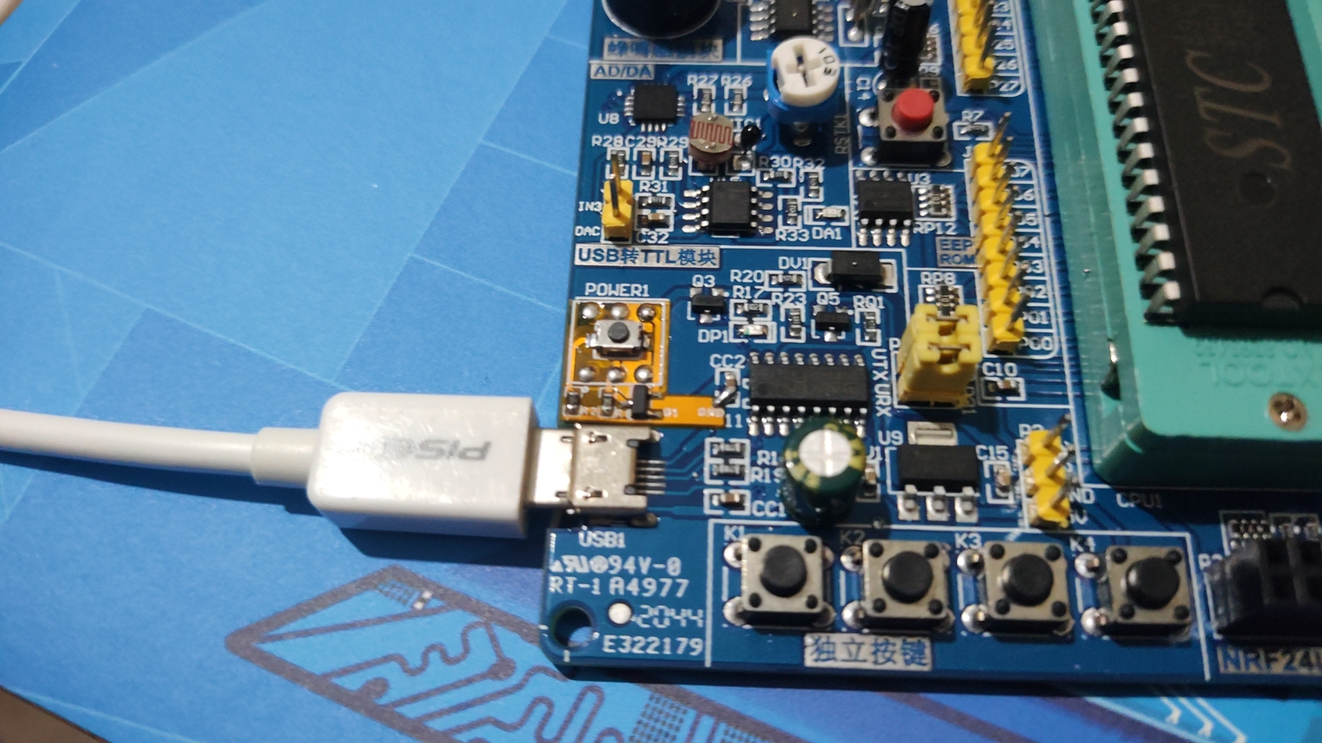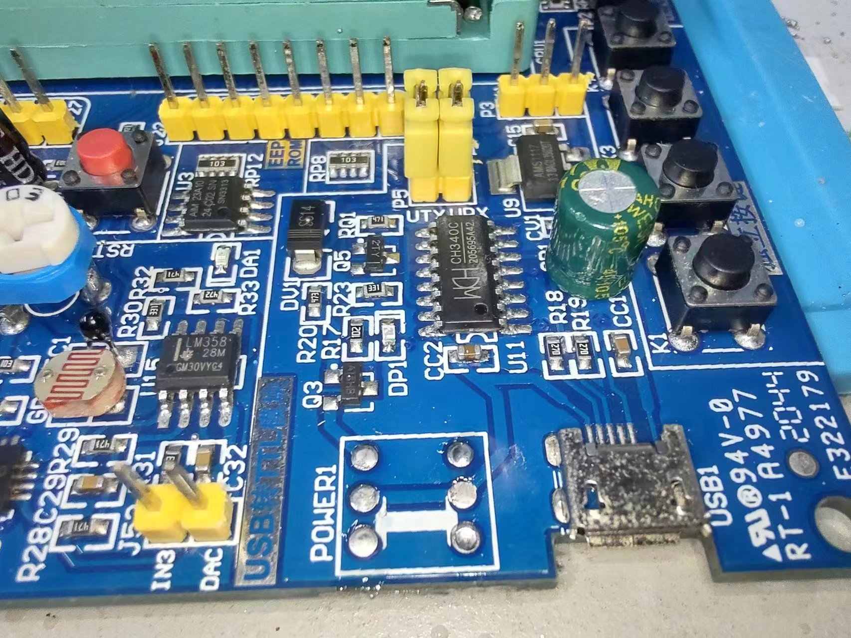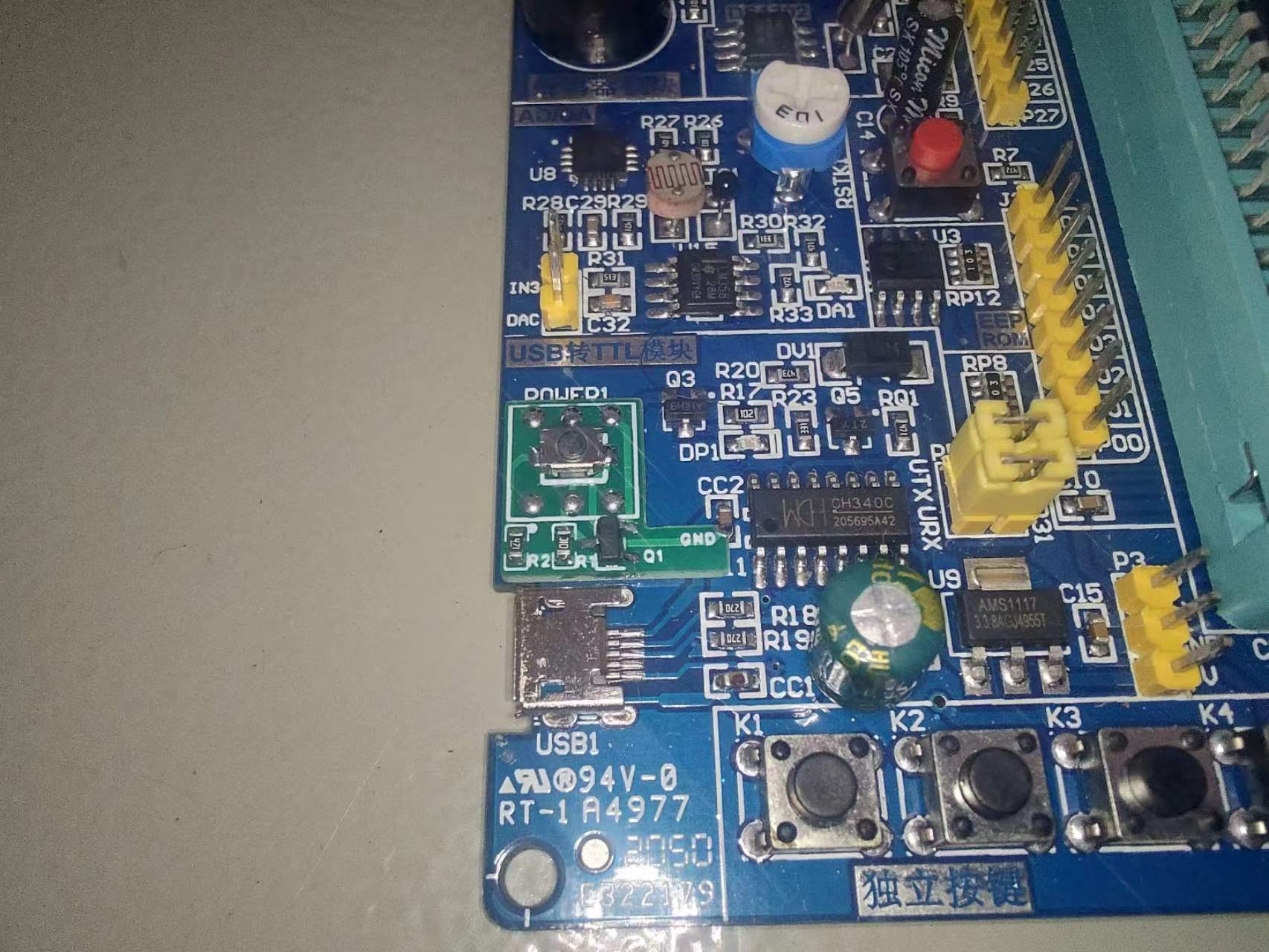 ③将小板焊接至51单片机开发板上然后焊上开关(顺序尽量用这个因为不用这个顺序烙铁很容易烫到开关)