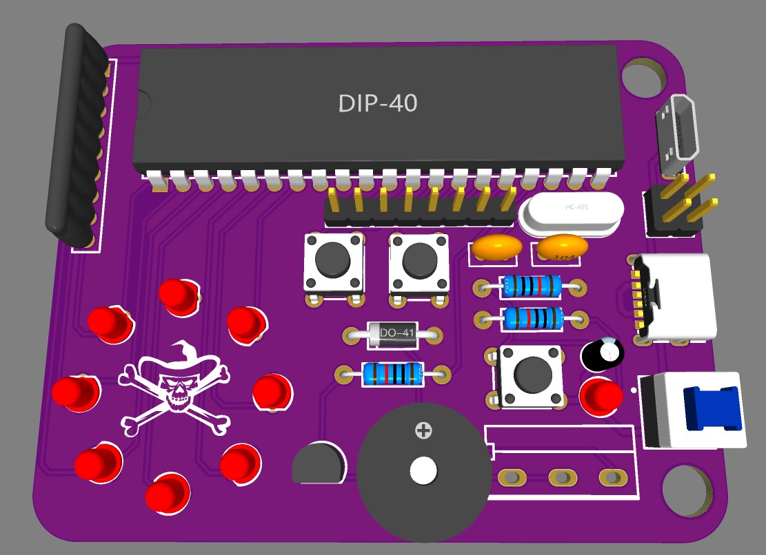 - 右侧多留出来的2.54排针为既为备用电源接口,又可配合P3.0和P3.1端子进行烧录;