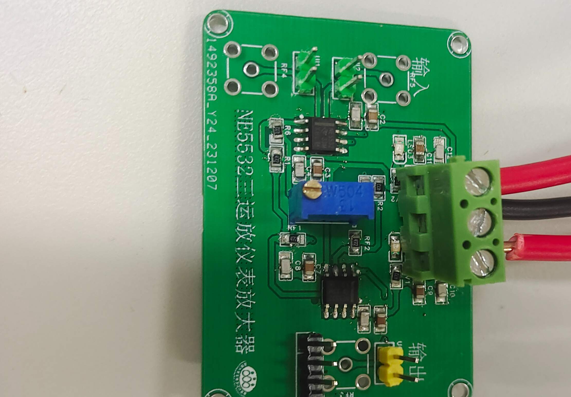 因为太穷了买不起AD620和AD8006,所以用了“音频皇后”NE5532,总的来说就是俩跟随加一个求差,尽可能地减少噪声放大我们所需要的小信号
