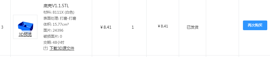 还是在三维猴打印,使用8111X树脂,耐温59度。手感也不错。