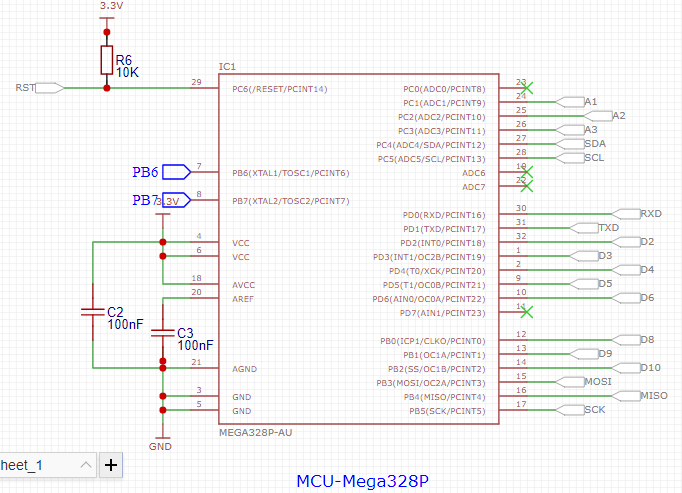 上图为MCU最小系统板2D图像,左侧1.27的排针引出了328P烧录Bootloader及程序的SPI接口,和我之前打板的烧录底板配合连接电脑烧写程序!