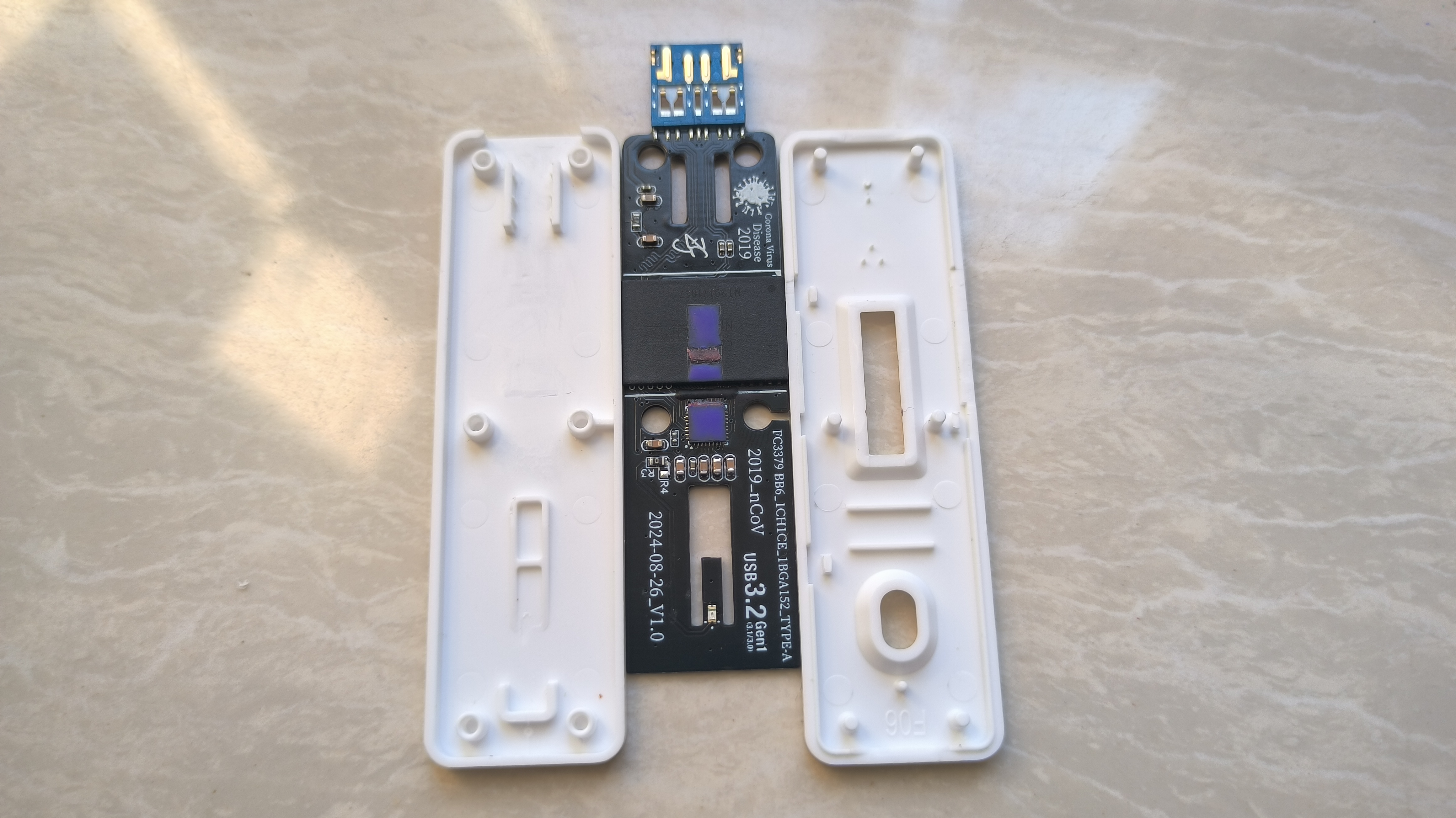 主控用fc3379-bb 6,QFN32封装 ,1ce主控做的设计,发布的工程为第二版(第一版USB的地方宽度不够,插入设备时需要注意位置(插正中间),厚度也不够,得粘个塑料),目前第二版加大了USB接口的宽度,并且尾部的小板可以割下来粘到前面USB的位置以增加厚度防止松动(板厚一定得0.8MM,因为用的超薄USB接口0.4MM左右,板子头加尾部小板的厚度就1.6MM了,加起来一共2MM,刚好够USB接口的厚度,高了插不进去,低了会松,所以板子记得打0.8MM的,板子颜色看你喜欢),切割PCB时要在做了保护措施的场地,避免粉尘和玻纤对人体造成伤害