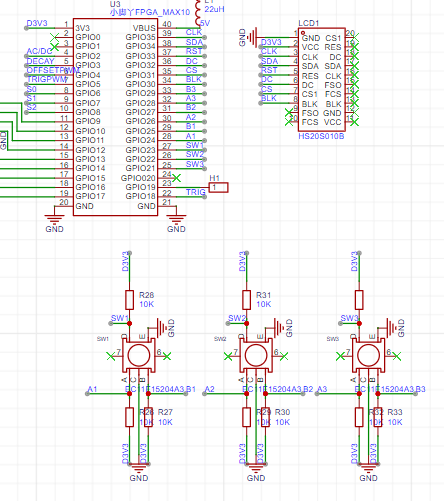 这部分是FPGA和人机交互的部分,采用三个编码器,可以灵活调节各种参数。LCD采用240*320分辨率的屏幕,显示效果更好。