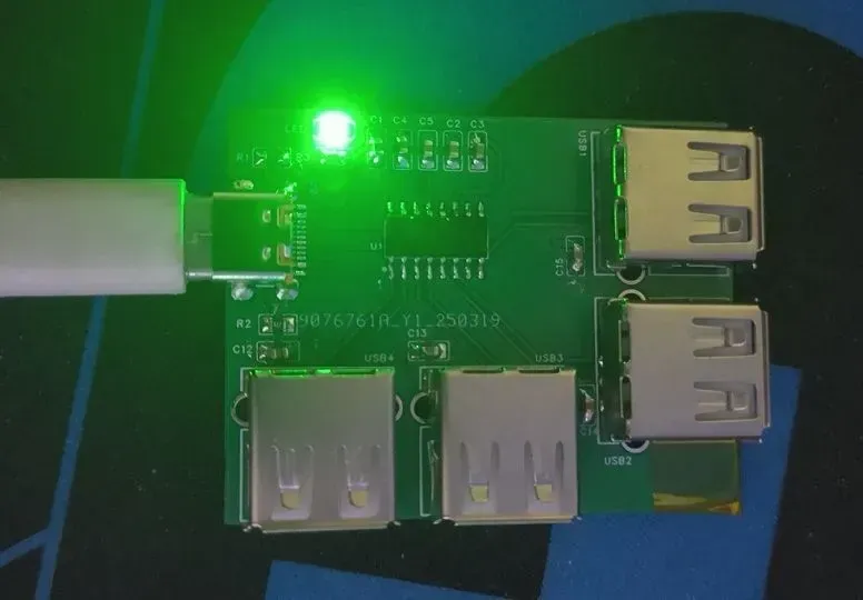 四个接口均为USB2.0,采用侧插减小PCB空间占用。所有滤波电容采用0603规格的100nf,也可以改用更大容值或其它封装。