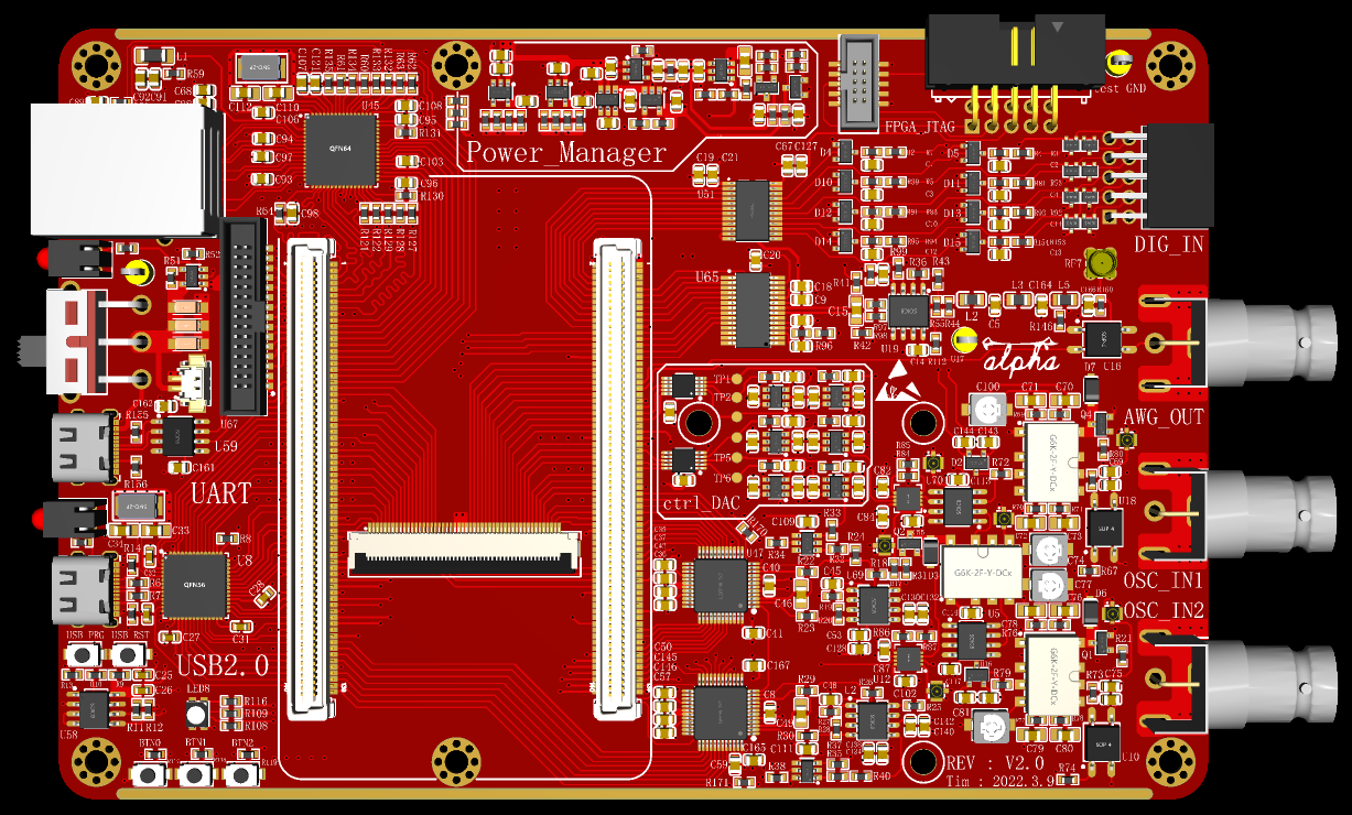 便携式示波器底板:对波形预处理、任意信号生成;