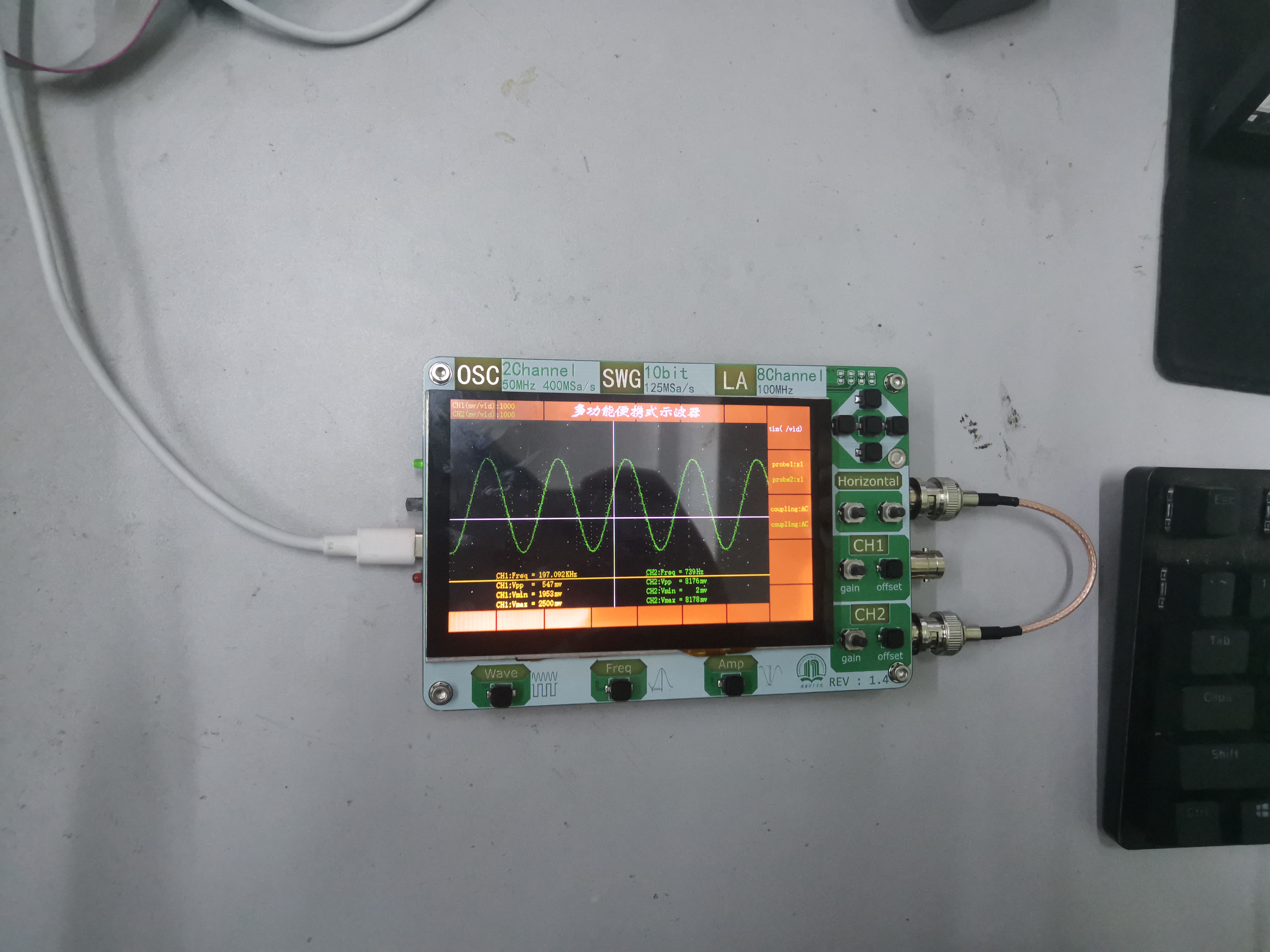 便携式示波器显示板:功能与方向按键组合实现不同操作,LCD显示信息;