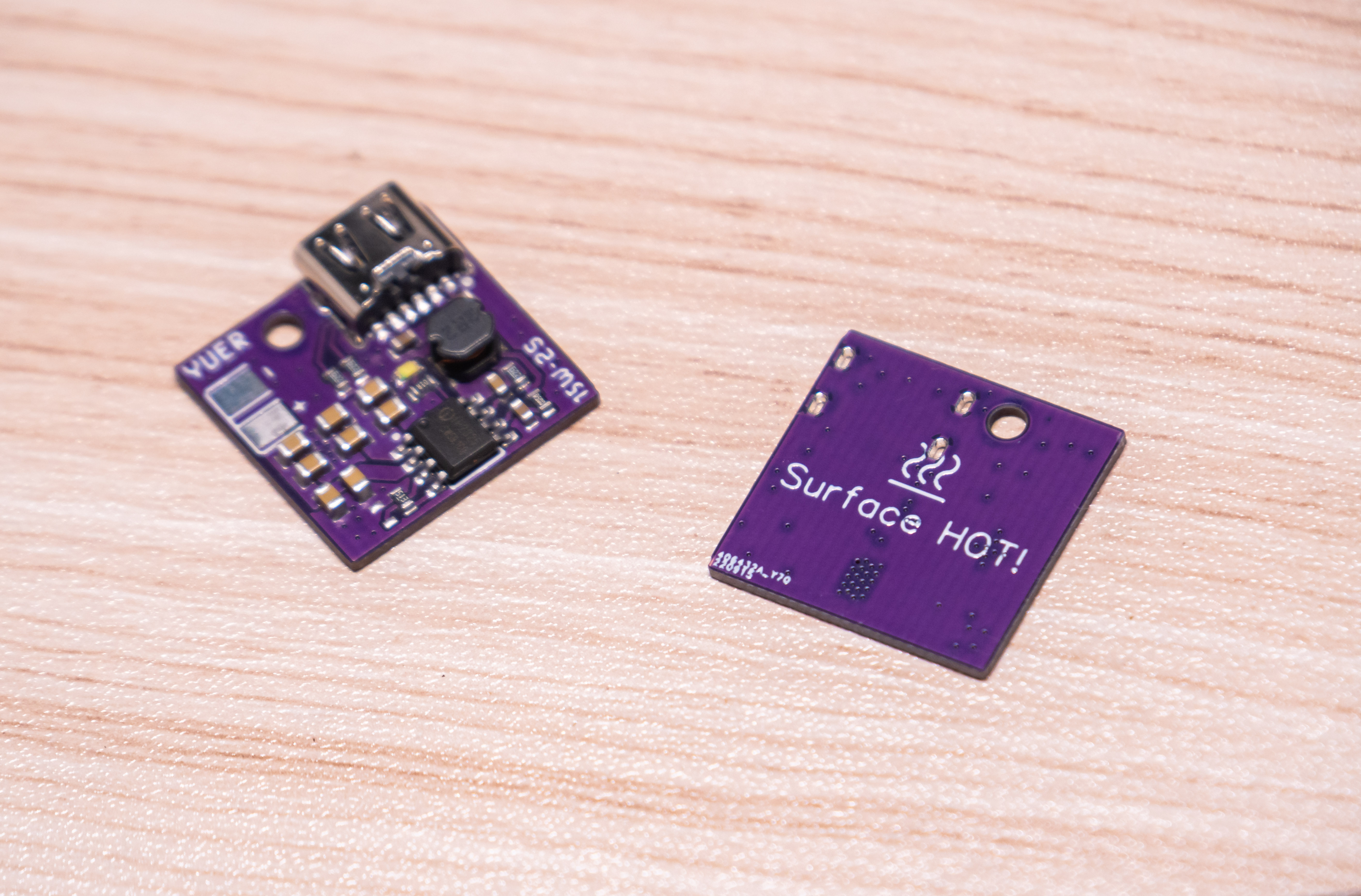 模块采用2X2CM大小设计,可以直接在某宝购买2x2CM的散热片贴在背后散热,PCB留有一个螺丝固定孔。