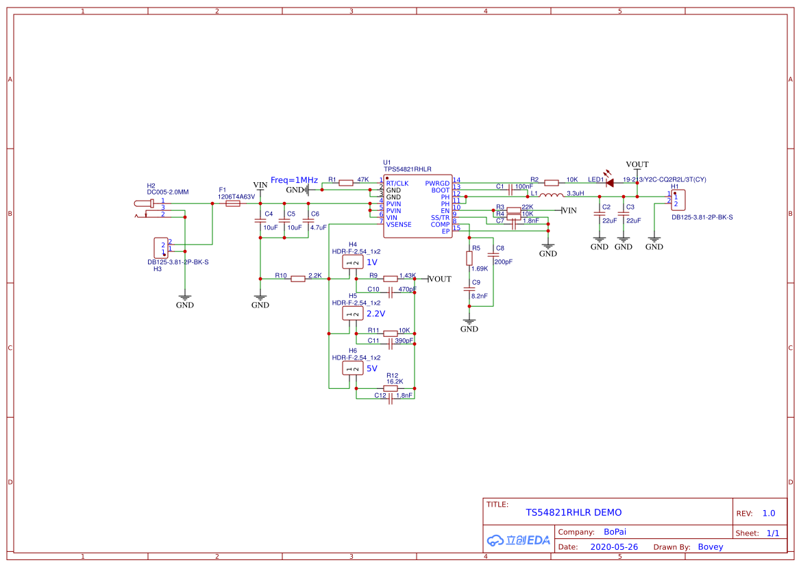觉得这款DCDC降压芯片很不错(8A输出),就设计了1个demo,分享出来供需要的朋友使用。