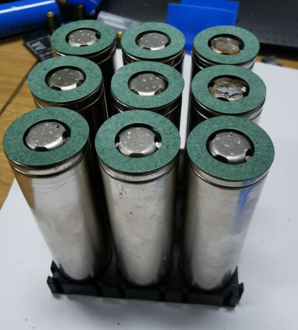由于找不到合适外壳,所以只能拆解外壳,但是这是粘在一起的,只能强行破坏了,单节固定,花两块钱买上10个3p的18650电池支架组成3*3的电池支架