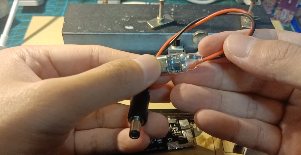 PD20V诱骗器引出正负极,接上DC公头。注意:诱骗器接DC公头的正负极要区分好,要与控制板的DC母头正负极配对!