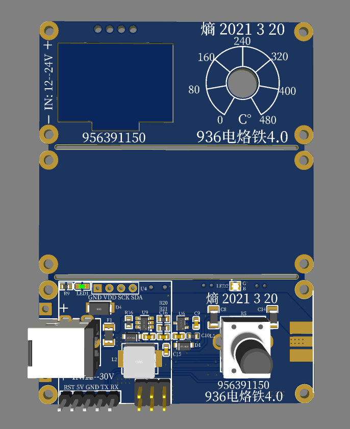 支持type-C快充和DC5.0接口的多功能936烙铁驱动板,带电压电流测量,温度测量显示,自动检测切换热电阻和热电偶工作模式