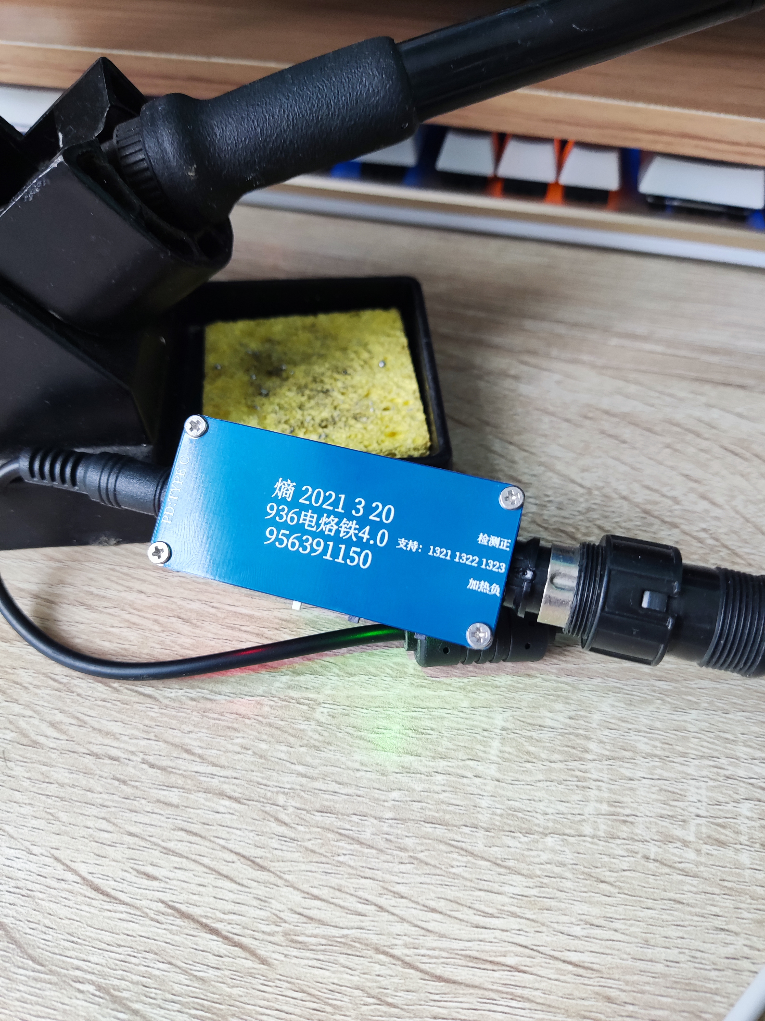 烙铁手柄接口通用的936焊台5芯接口 是从坏的焊台拆的物料 M2铜柱连接上下保护板