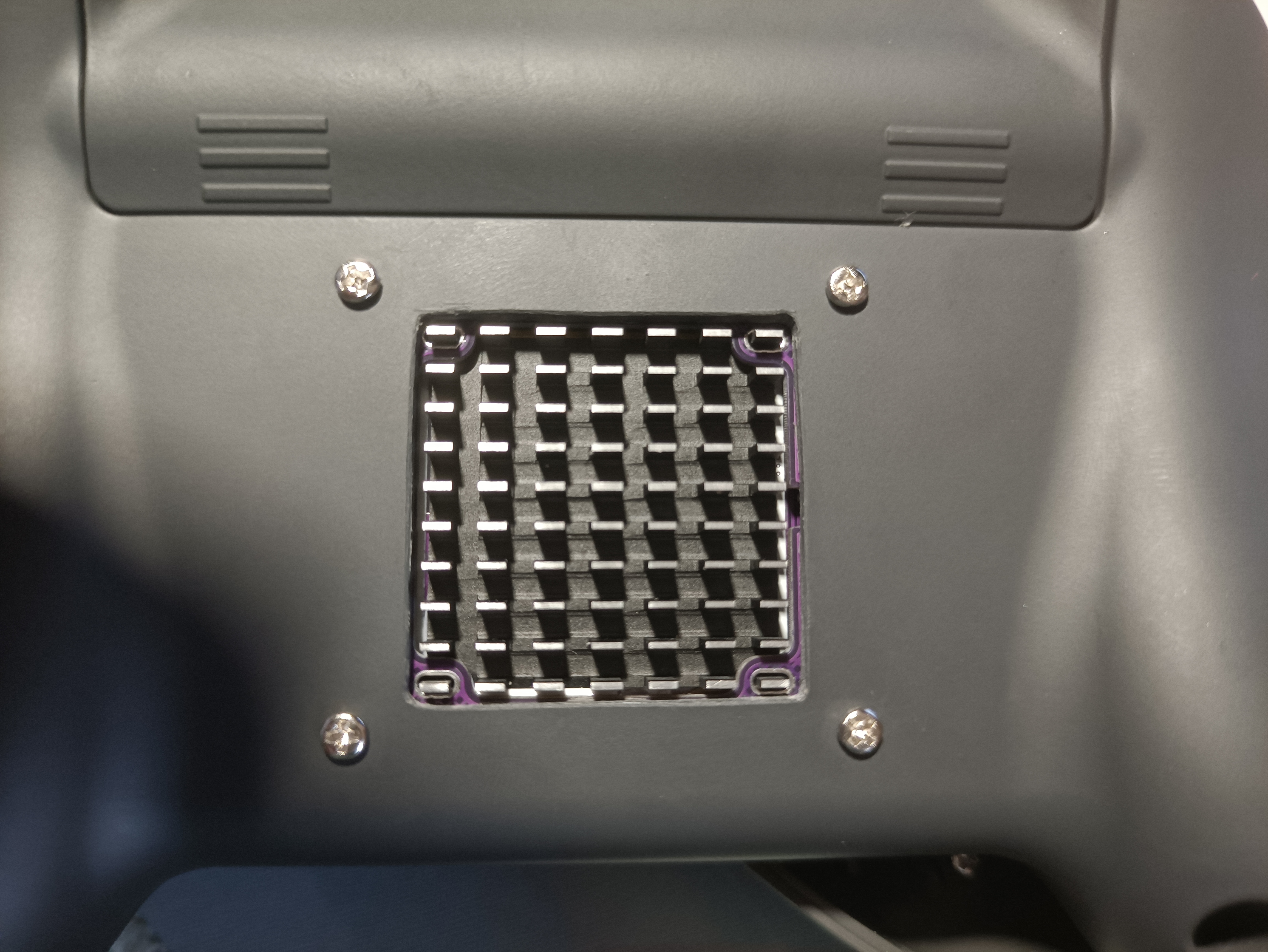 e28模块背面PCB是挖空的,贴1mm硅脂片或涂牙膏让热传到散热片上,贴上一层高温胶带绝缘。