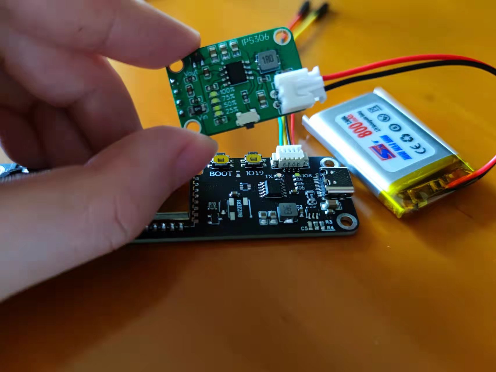 实际黑板上IO19下方的LED(标号TX)闪烁,说明黑板有电压输入,即IP5306模块有输出