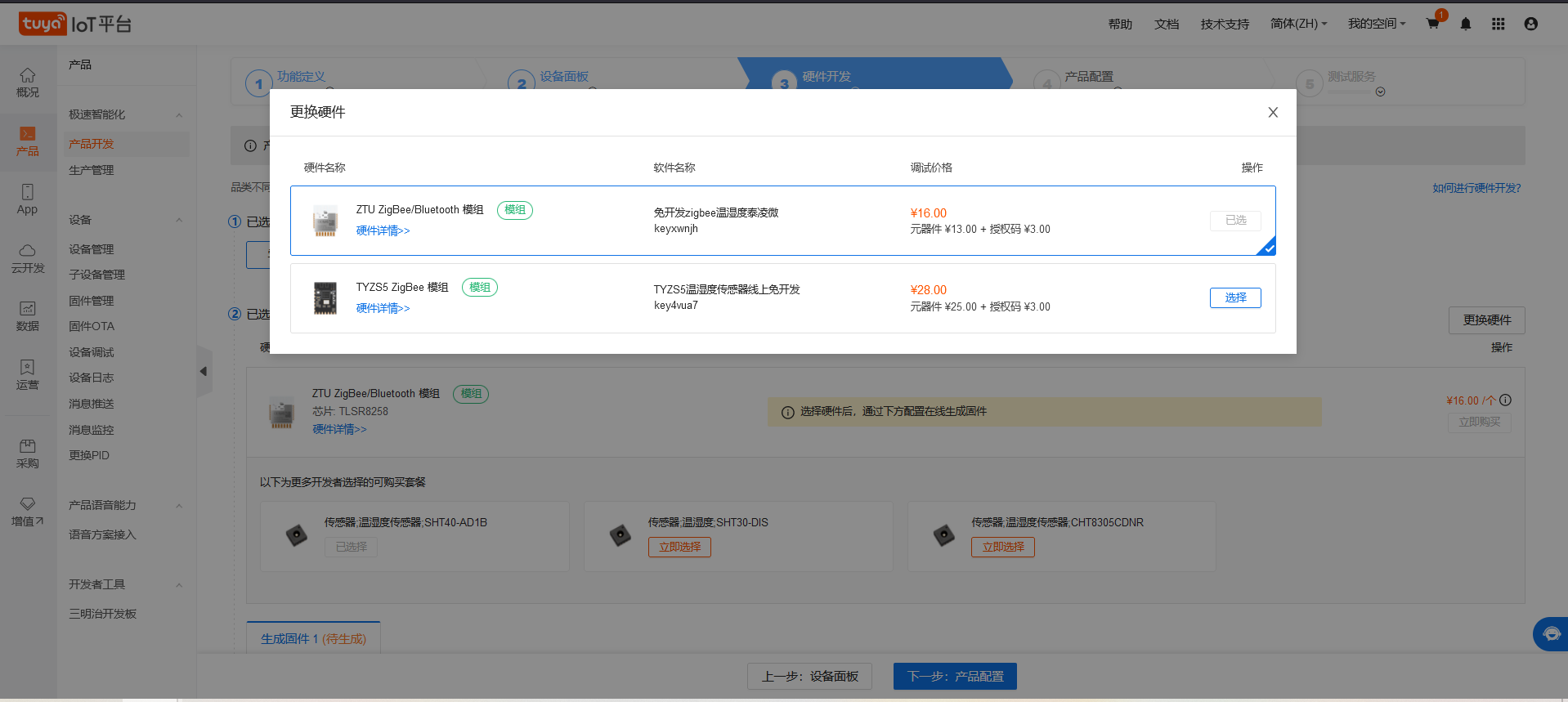 第四步:选择合适的面板,选择合适的模组(这里我以ZTU模组为例)
