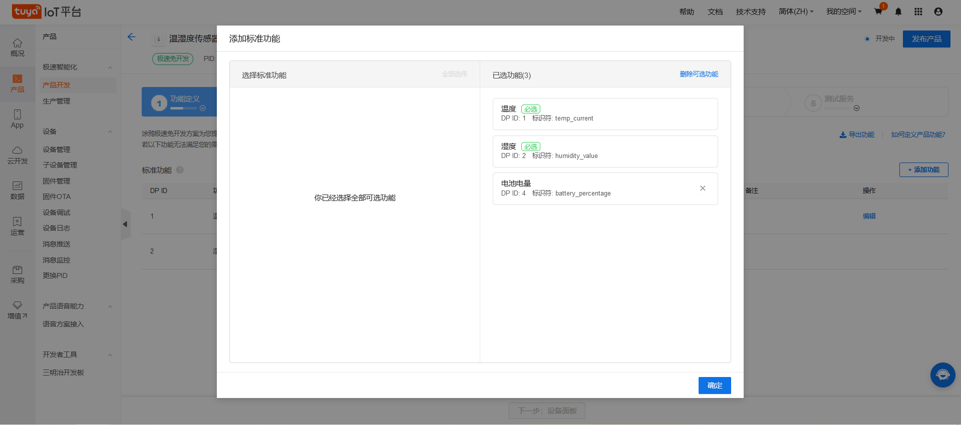 第三步:填写产品名称,,这里我们勾选全部功能选择,直接点击确认