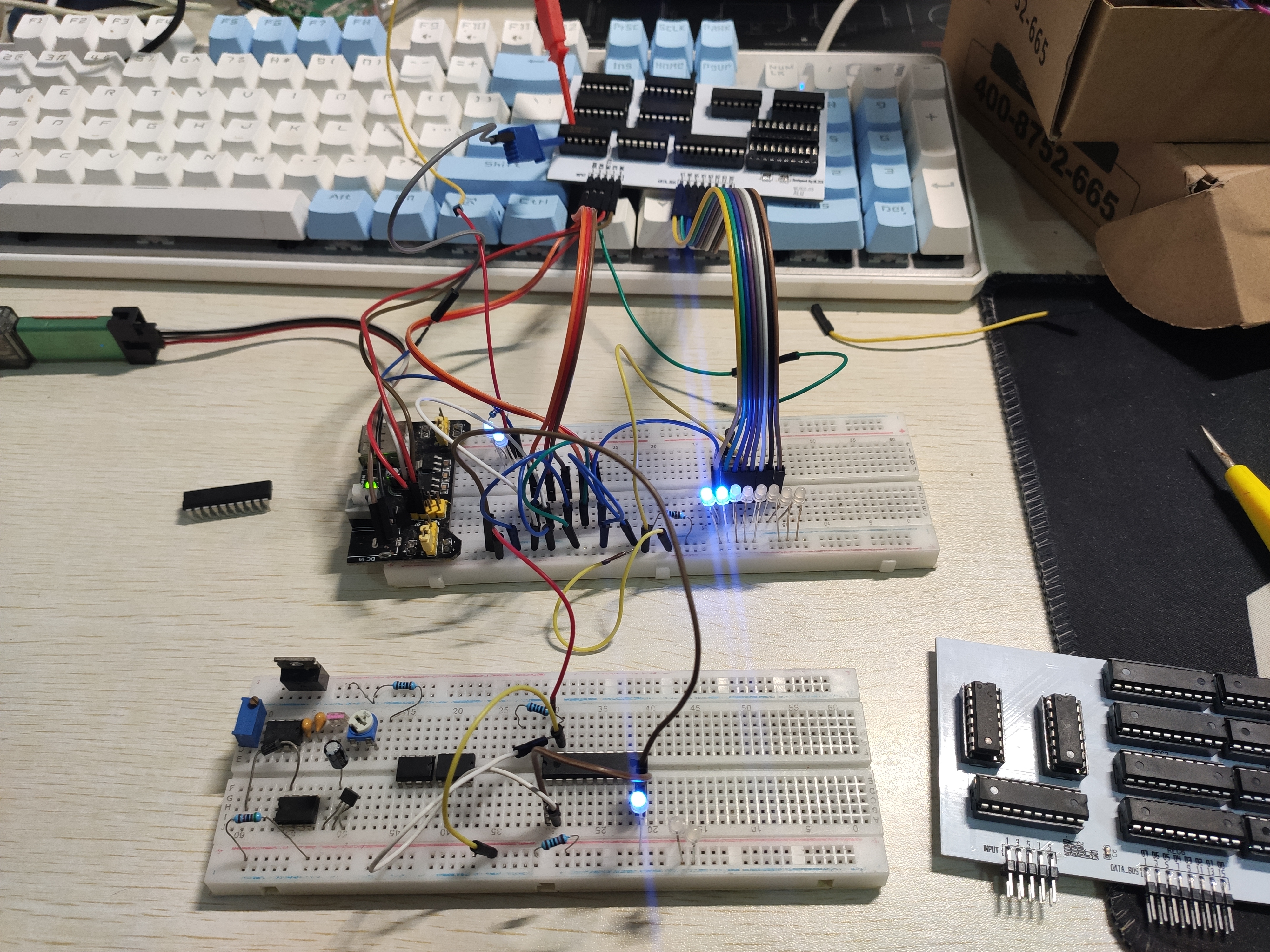 这是一个由74芯片打造的8bit CPU!32Byte ROM,8Byte RAM,8条指令,经典五级流水线,哈佛架构,可调主频,入门级8bit CPU,适合想了解CPU构造及运行原理的diyer。