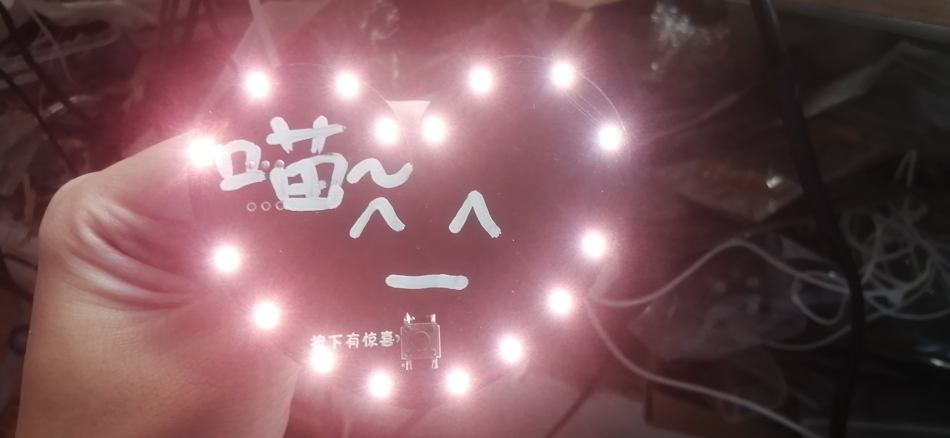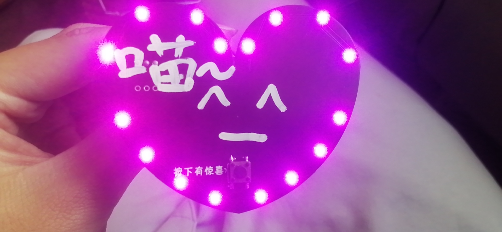PCB心形贺卡,表白利器 笔芯<3,用白色记号笔写对ta说的话在正面,并在背面拨码开关选发光颜色 ta收到后,按下开关,就会发光 此项目基于WS2812灯珠,STC8G1K08 8脚单片机设计制作。