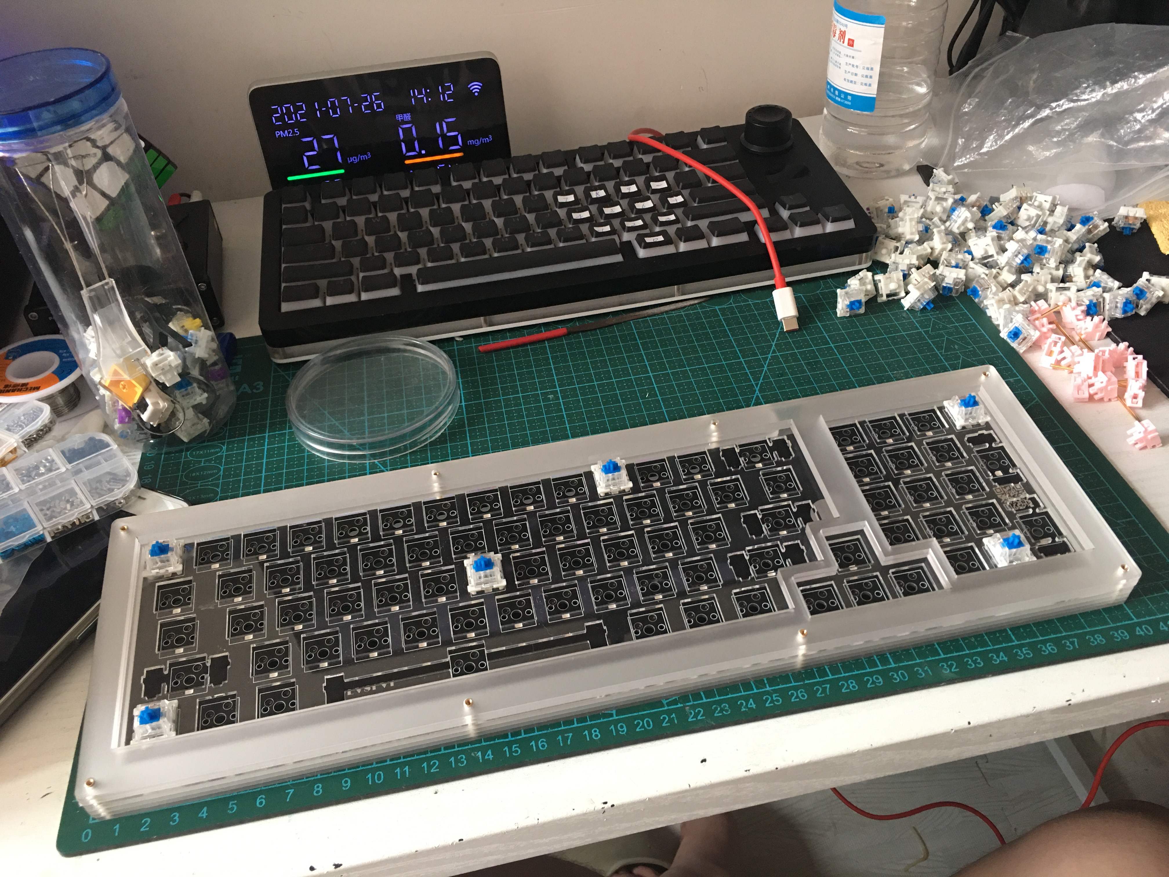 第一次自己做了一把键盘,分享出来 2021.7.27更新一下亚克力外壳,自己画了3D壳由于第一次画精度不太好就不上文件了,亚克力的外壳文件在下面,需要可以自取。