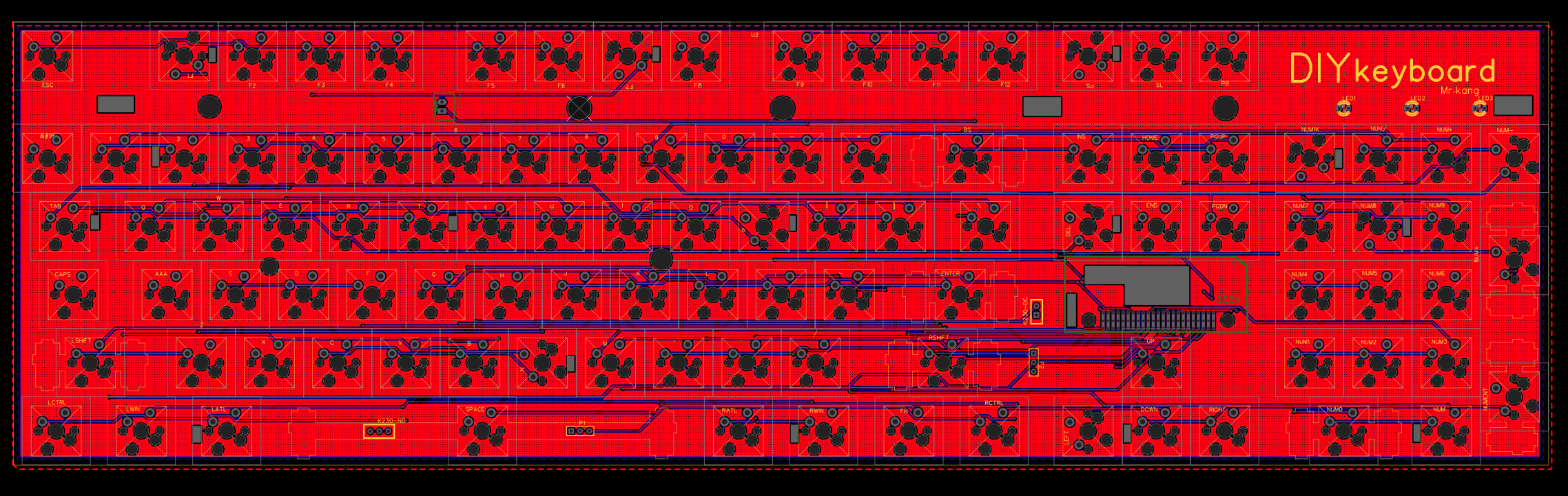 K230-104标准键主控 雷柏V860定位板开孔 无灯 (支持其他104键盘定位板修脚 本身PCB长度424*119 属于比较小巧)