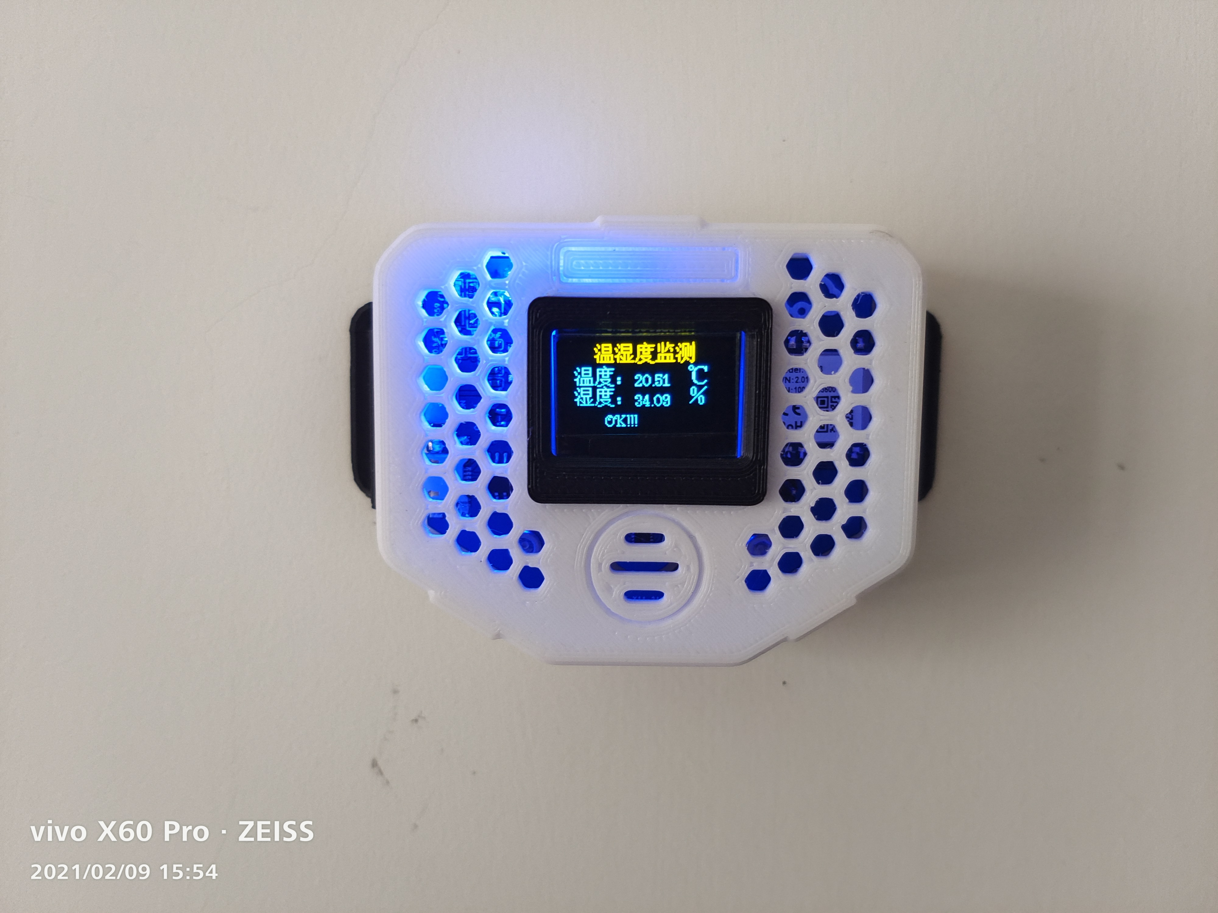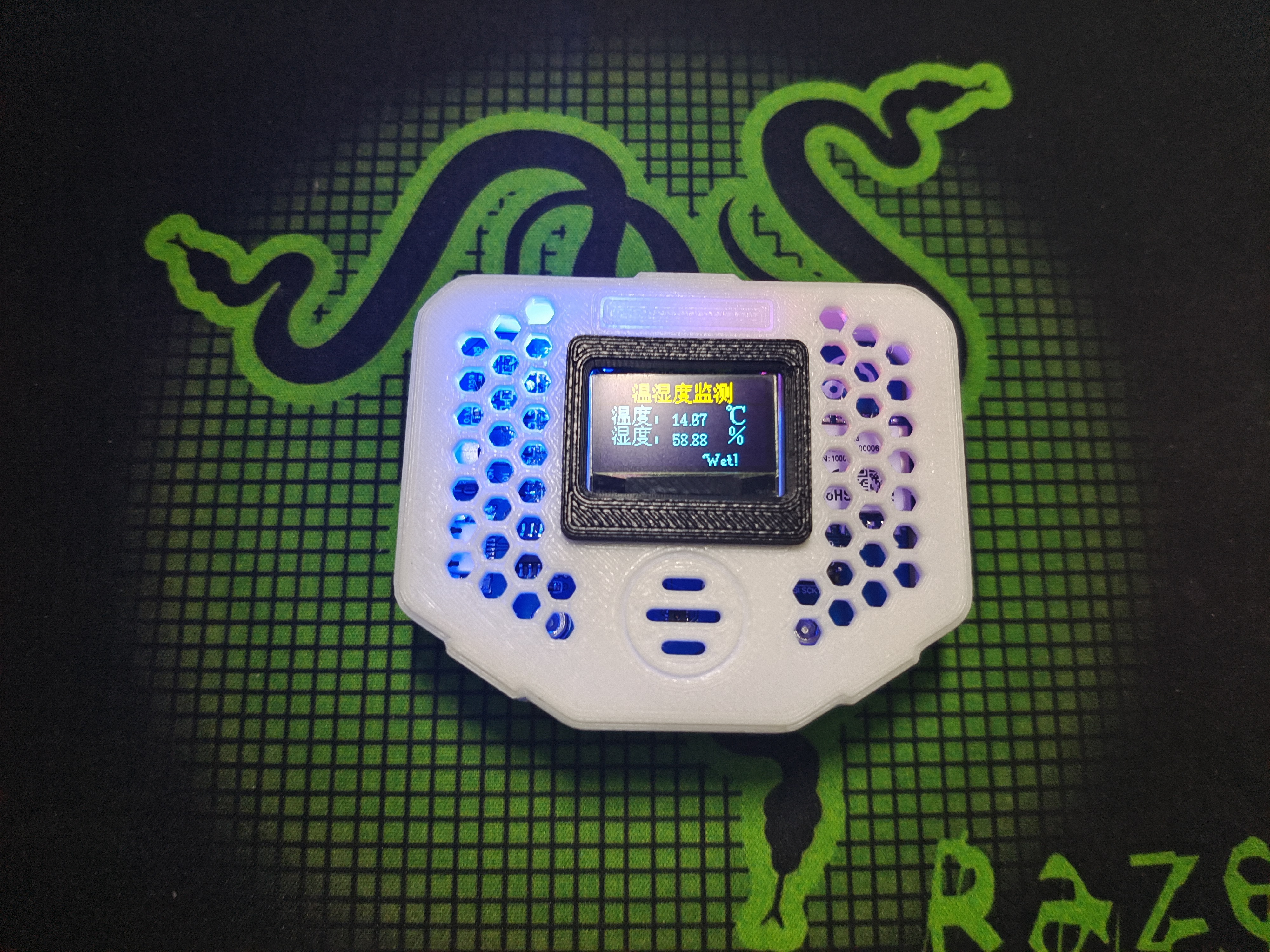 3. 0.96寸4针OLED屏实时显示温湿度数据,每隔20s刷新一次;