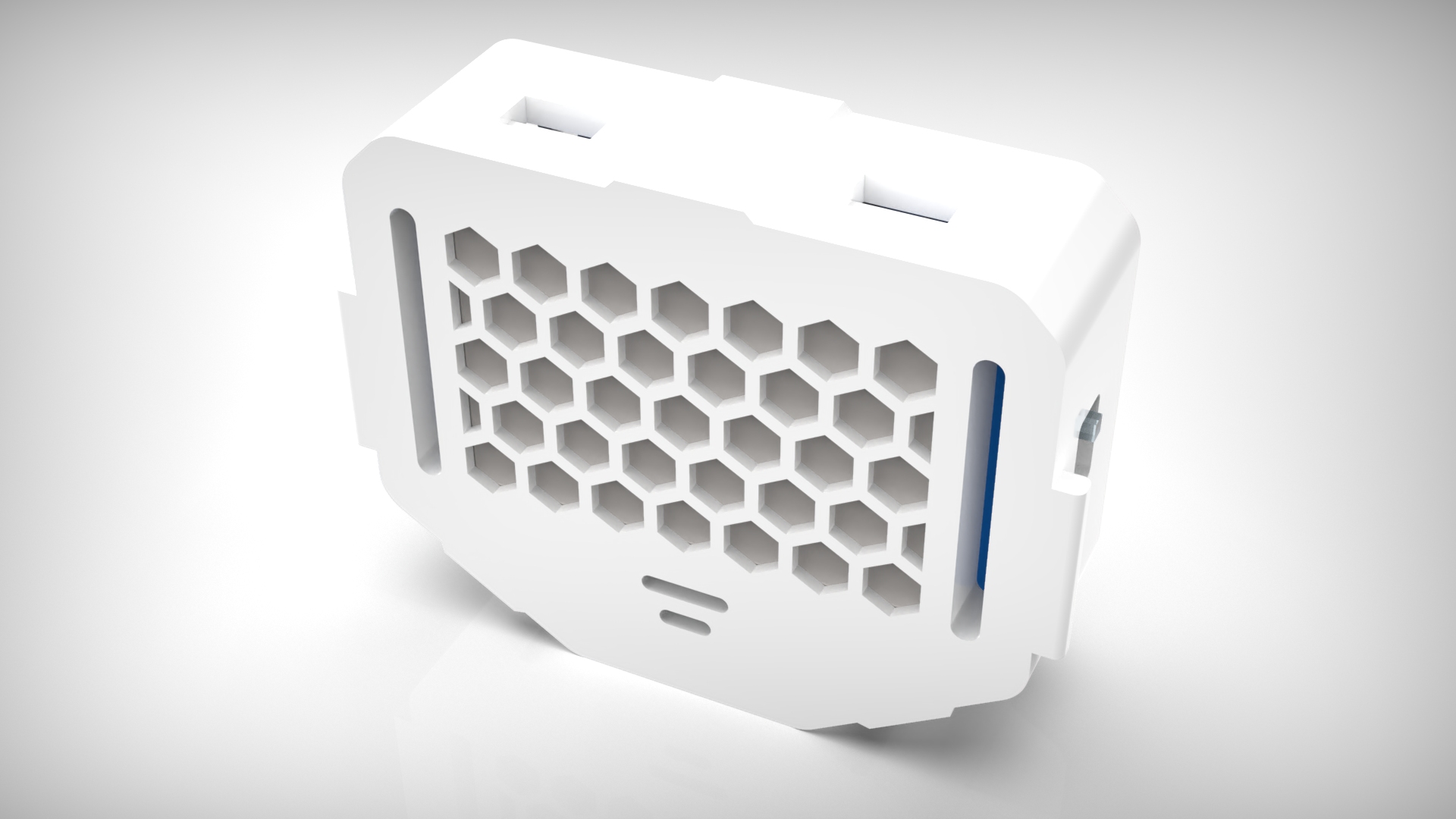 - 外壳的主要镂空图形采用六边形蜂窝,简约的同时增强科技感。