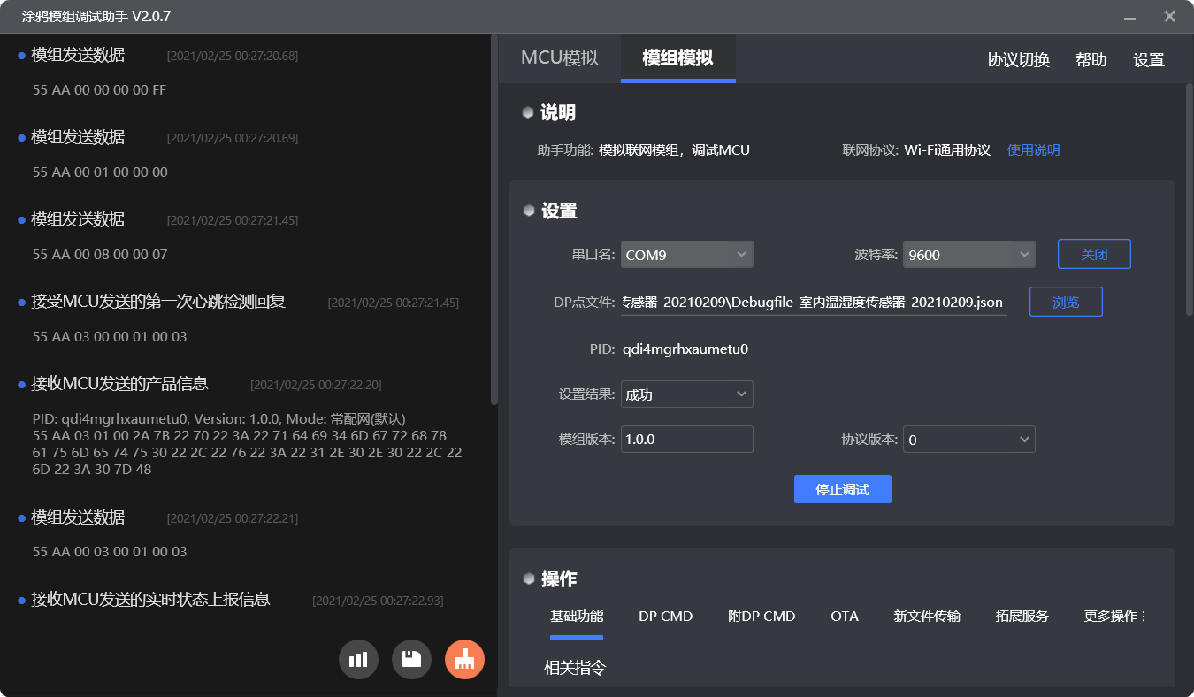 Tuya模组调试成功截图: