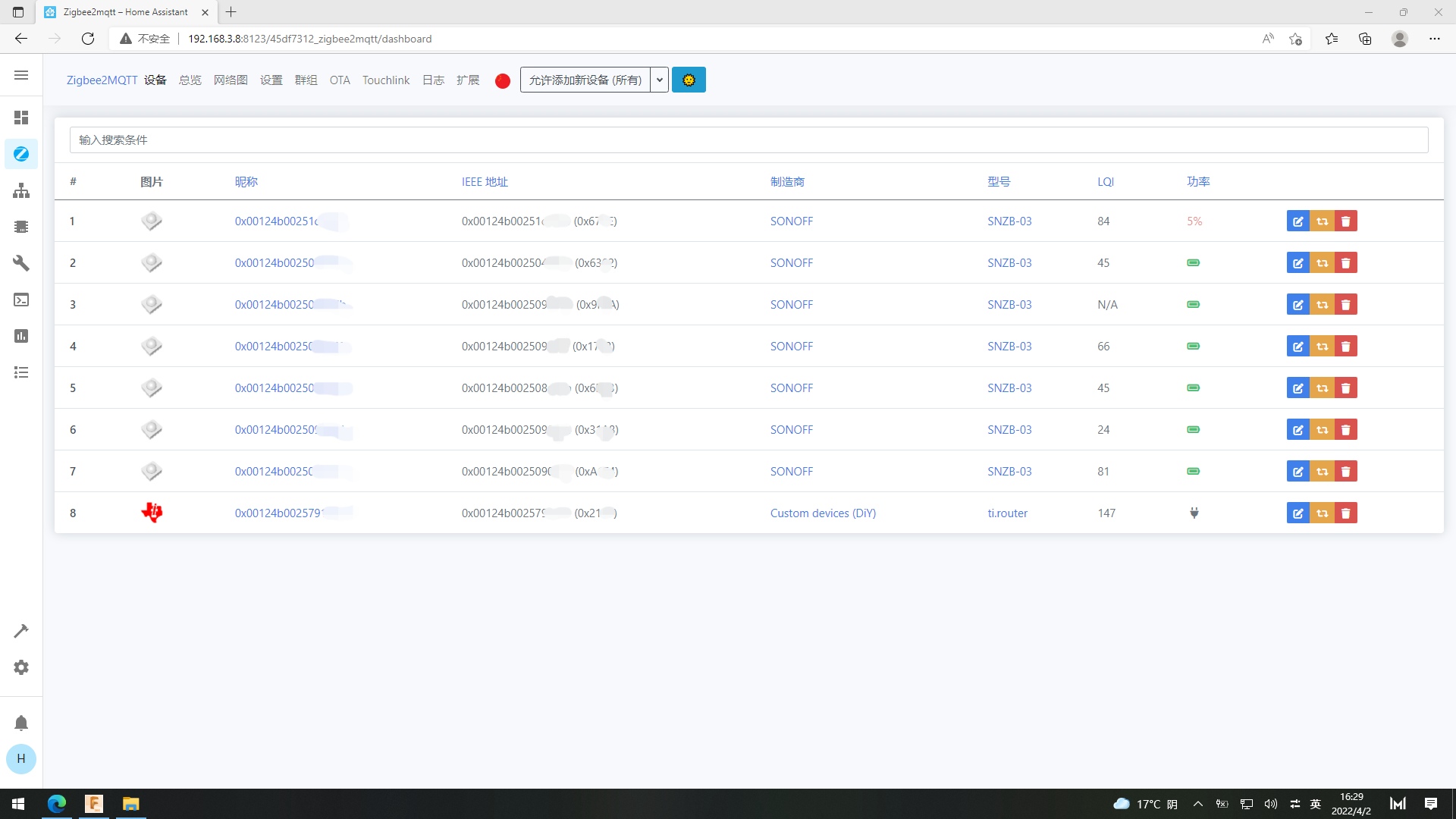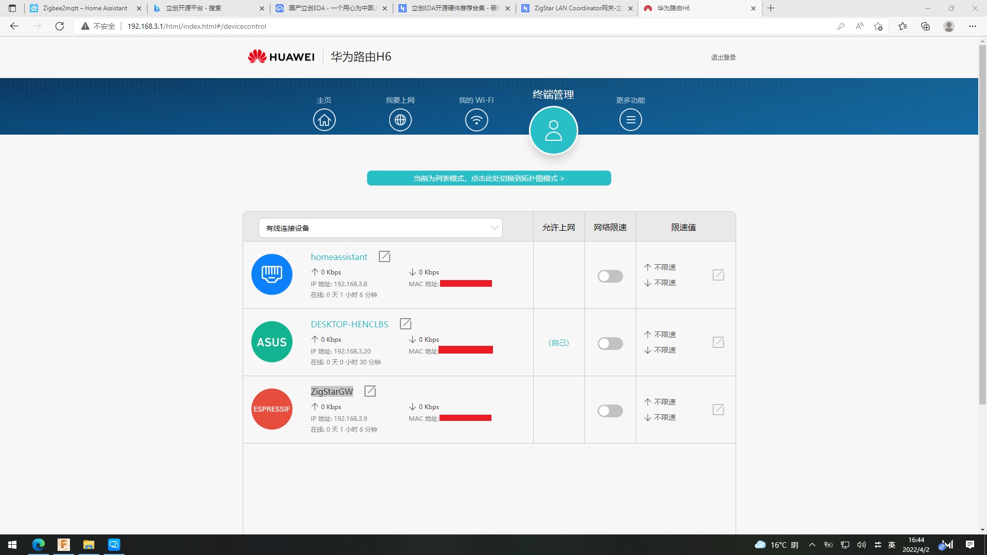 通过网线(局域网)接入homeassistant智能家居系统演示,目前可将295 个不同供应商的 2149 种设备接入,详情请参见https://www.zigbee2mqtt.io/