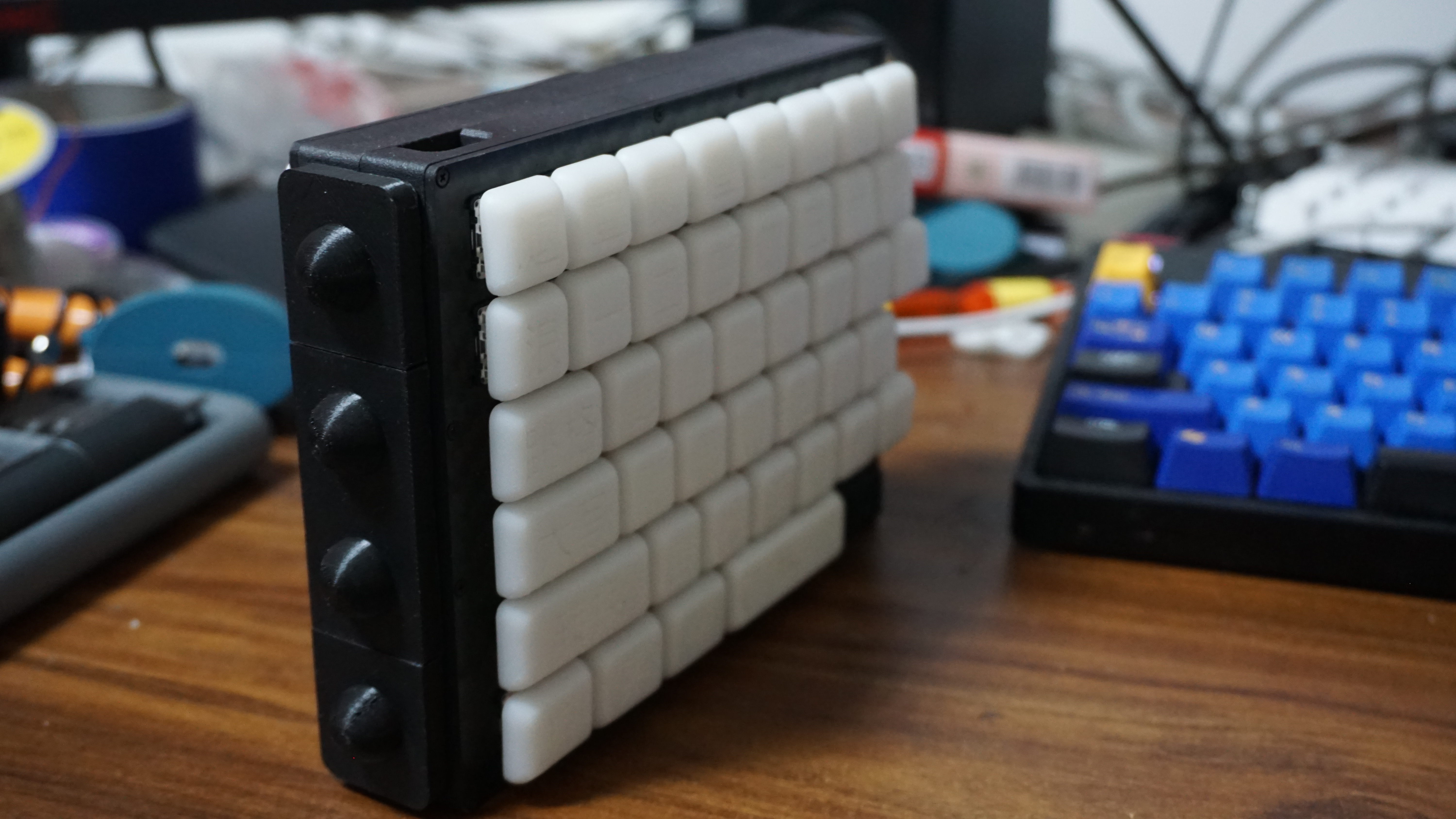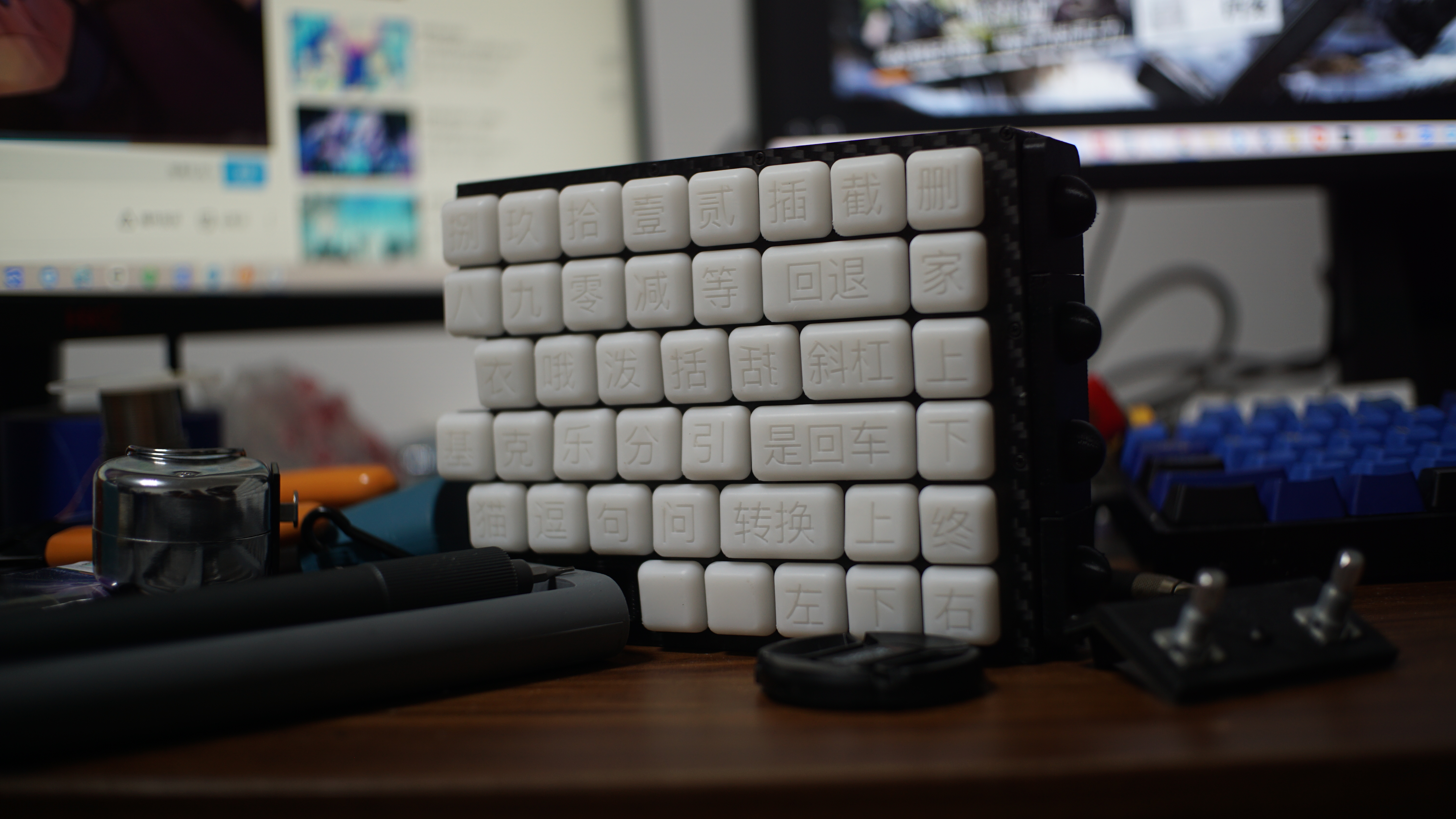 左手如图有两个旋钮,提高剪辑视频效率。ec11编码器的旋钮帽还蛮多的,这个是我自己做的,懒得花钱买。