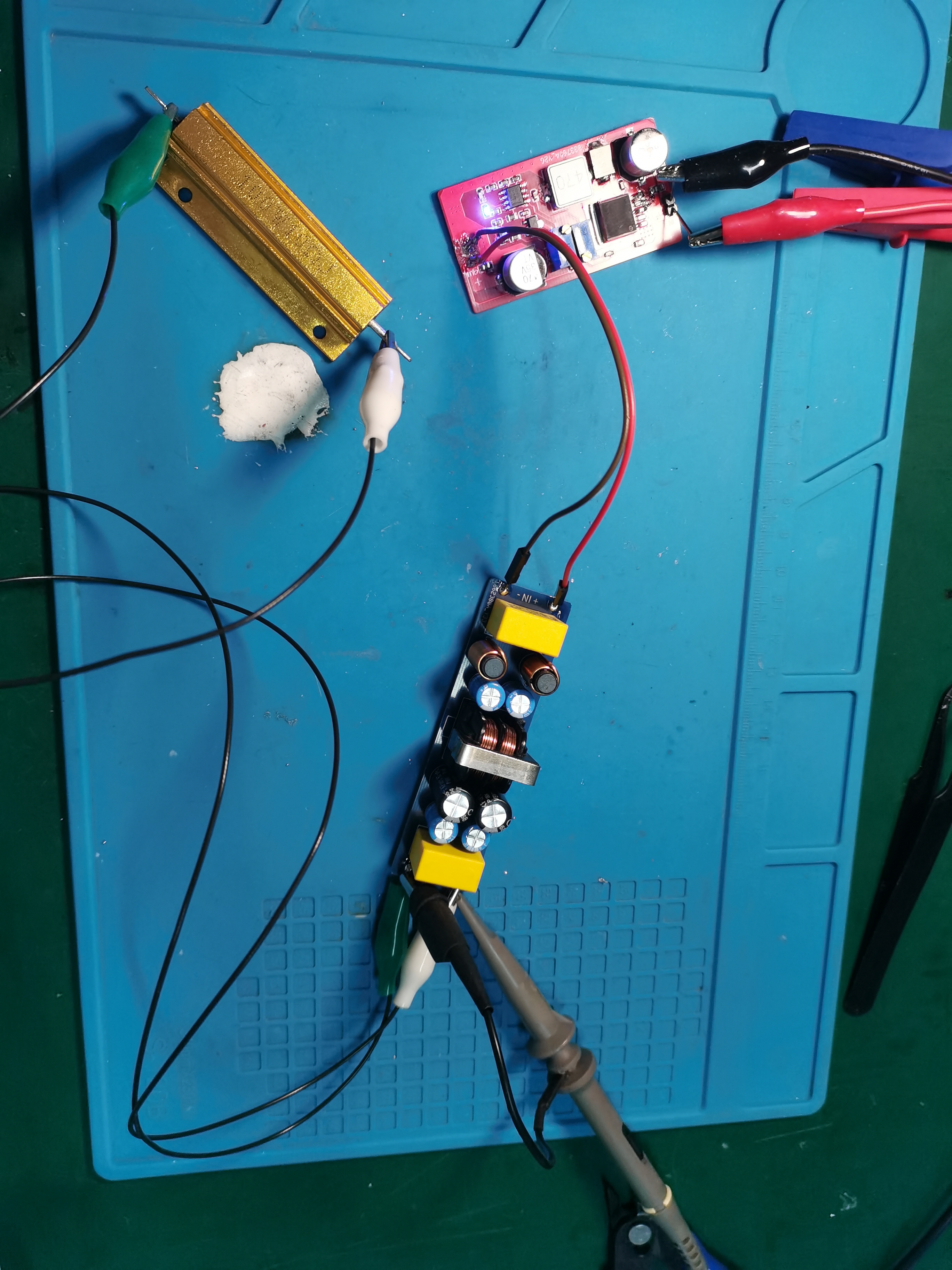 电源使用buck降压模块,经过滤波器后接入10欧合金电阻,