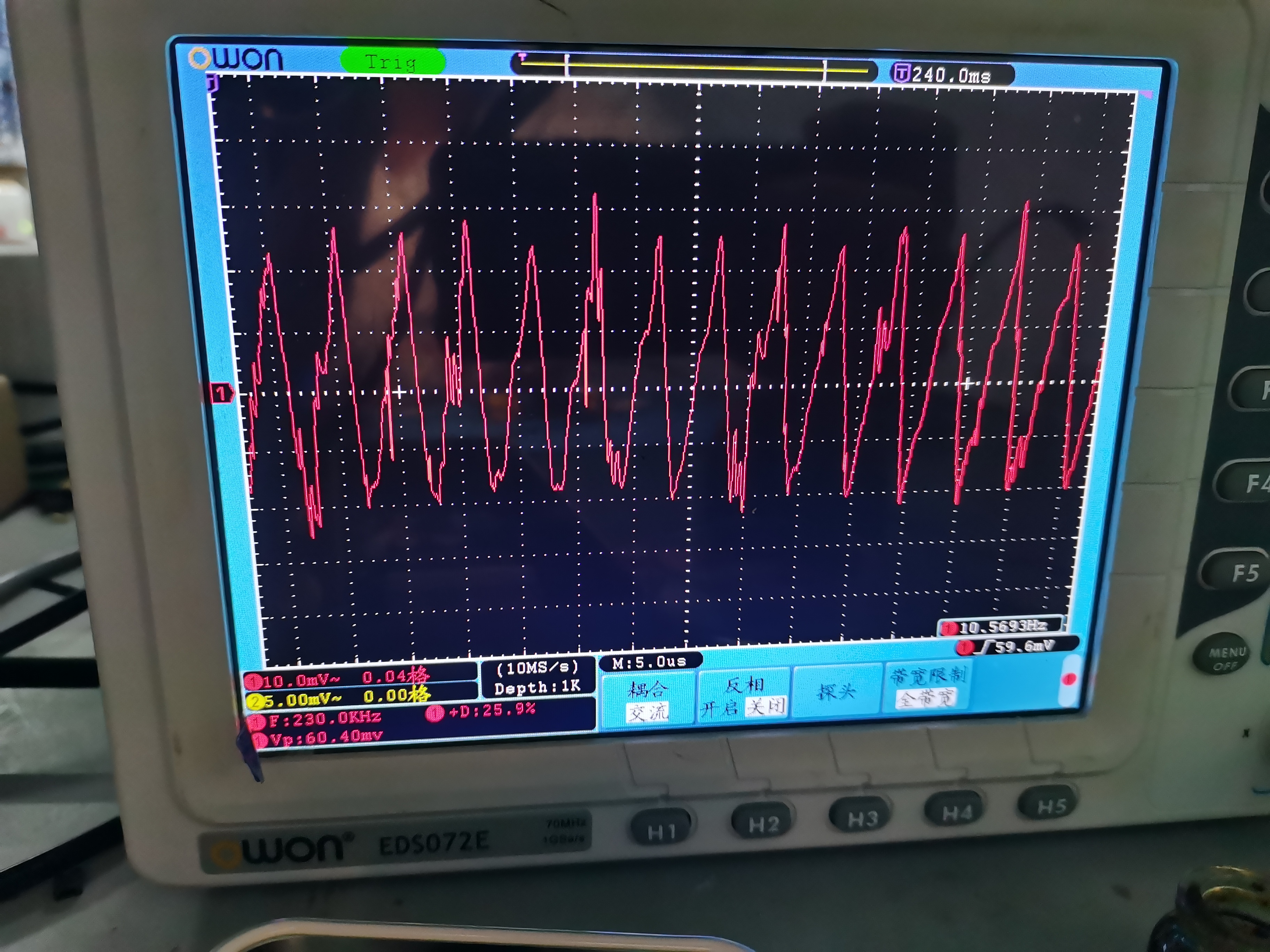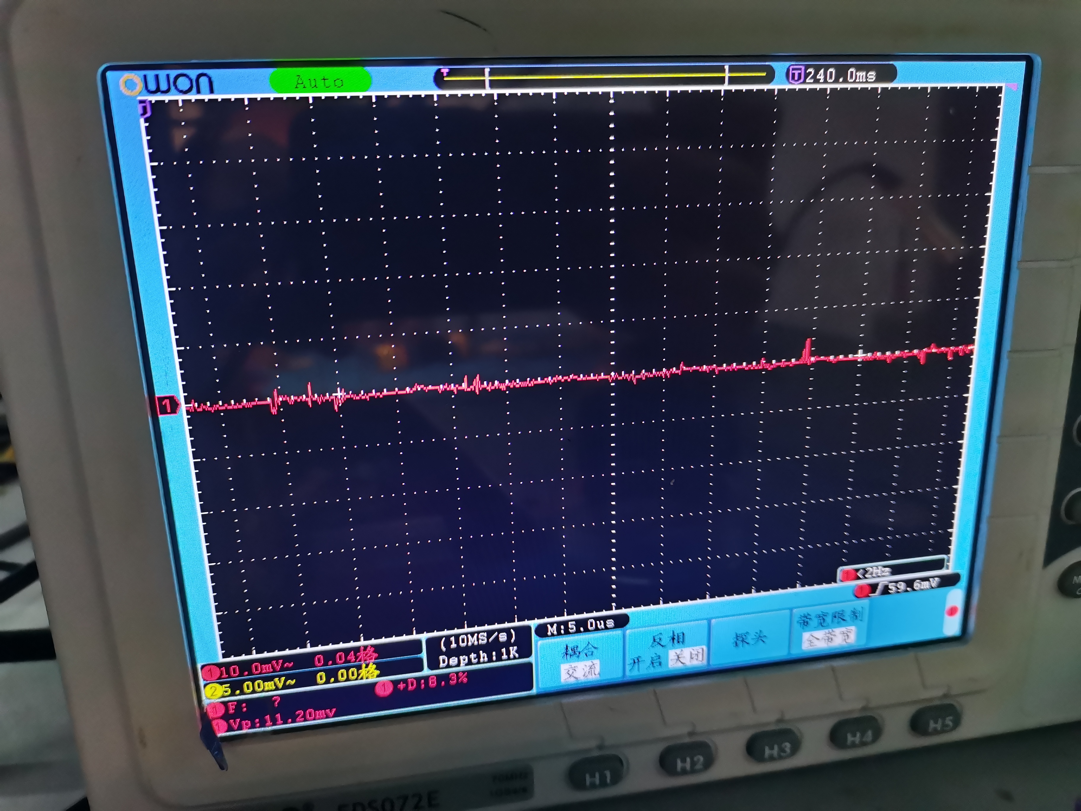 示波器接入滤波器输出端,测得vpp约11mv,图为10mv/格的波形,由此判断模块有效