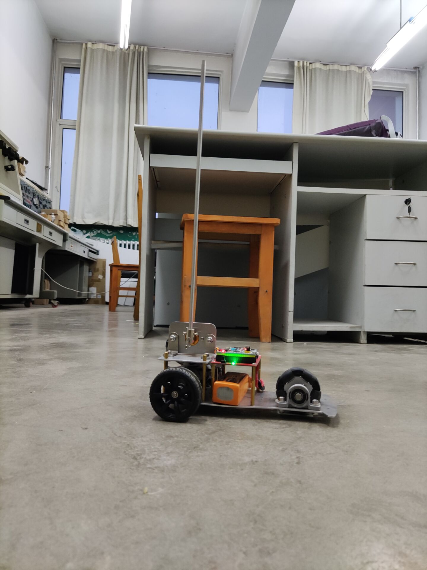 完成理论部分后开始着手搭建实际模型,使用STM32单片机作为系统的控制芯片,WDD35D4作为角度传感器,两个直流电机作为动力单元,使用编码器实时测量电机转速。控制器接收到输入的角度与速度信号,输出PWM信号,通过电机驱动模块调整电机转速,保证系统平衡。使用锂电池提供电源,通过降压模块将锂电池电压转换成传感器与控制器要求的电压信号。使用蓝牙模块和上位机设备建立无线通讯,可在上位机查看系统的运行情况以及改变控制参数的数值。使用嘉立创软件对系统硬件进行原理图与PCB的布局与设计。软件上则运用C语言作为逻辑功能开发语言,使用Keil5对软件进行编程,利用ST-Link烧写程序。将系统组装完成后上电运行,通过蓝牙模块对系统进行控制参数的调整和优化,最终实现让小车倒立摆系统平衡运行的目标。