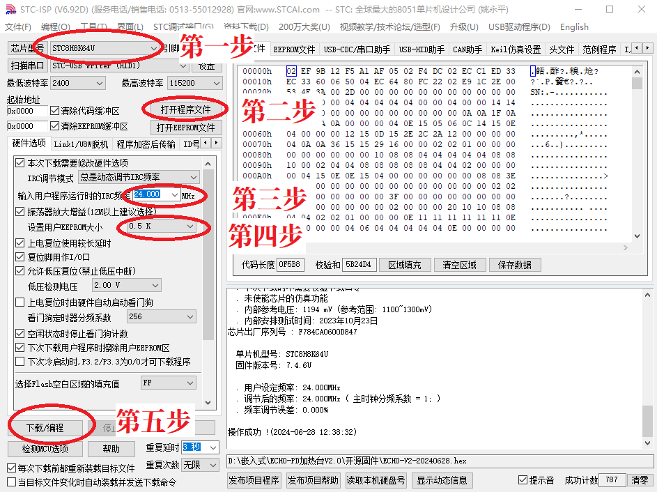 - 打开程序文件:ECHO-V2-20240628.hex