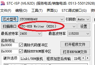 - 在焊接完全正确的情况下,STC-ISP软件将显示STC-USB Writer(HID1),如图7