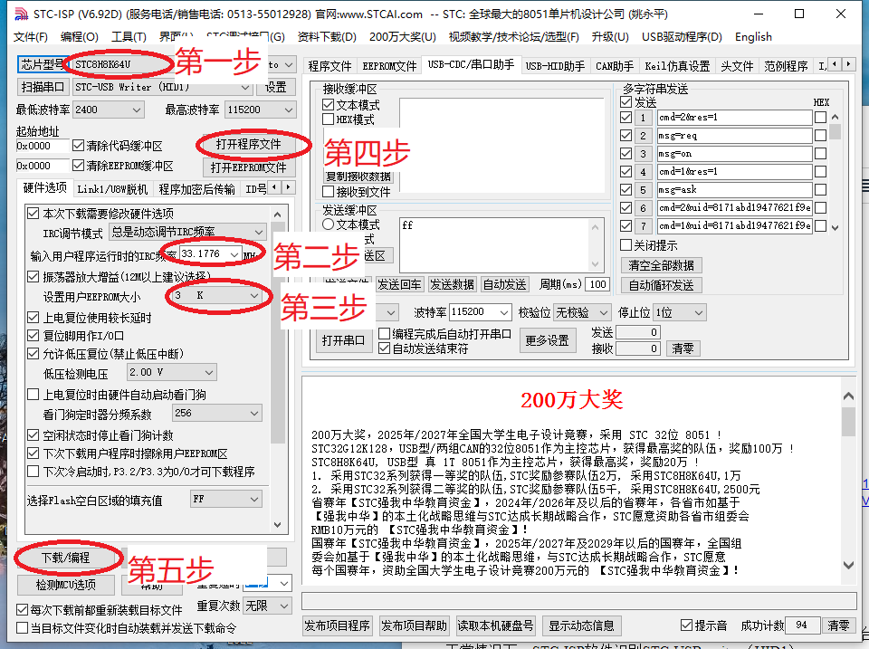 - 电脑端打开STC-ISP软件,插上Typec数据线