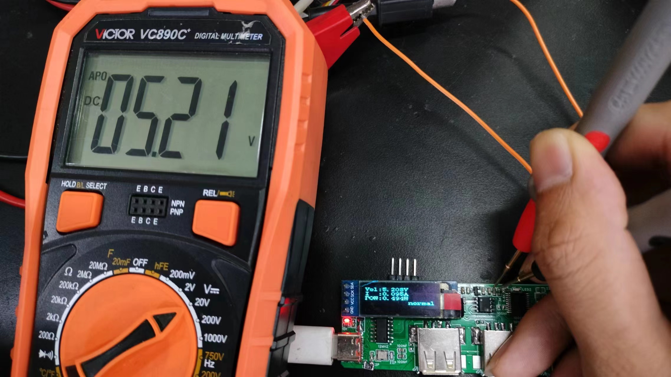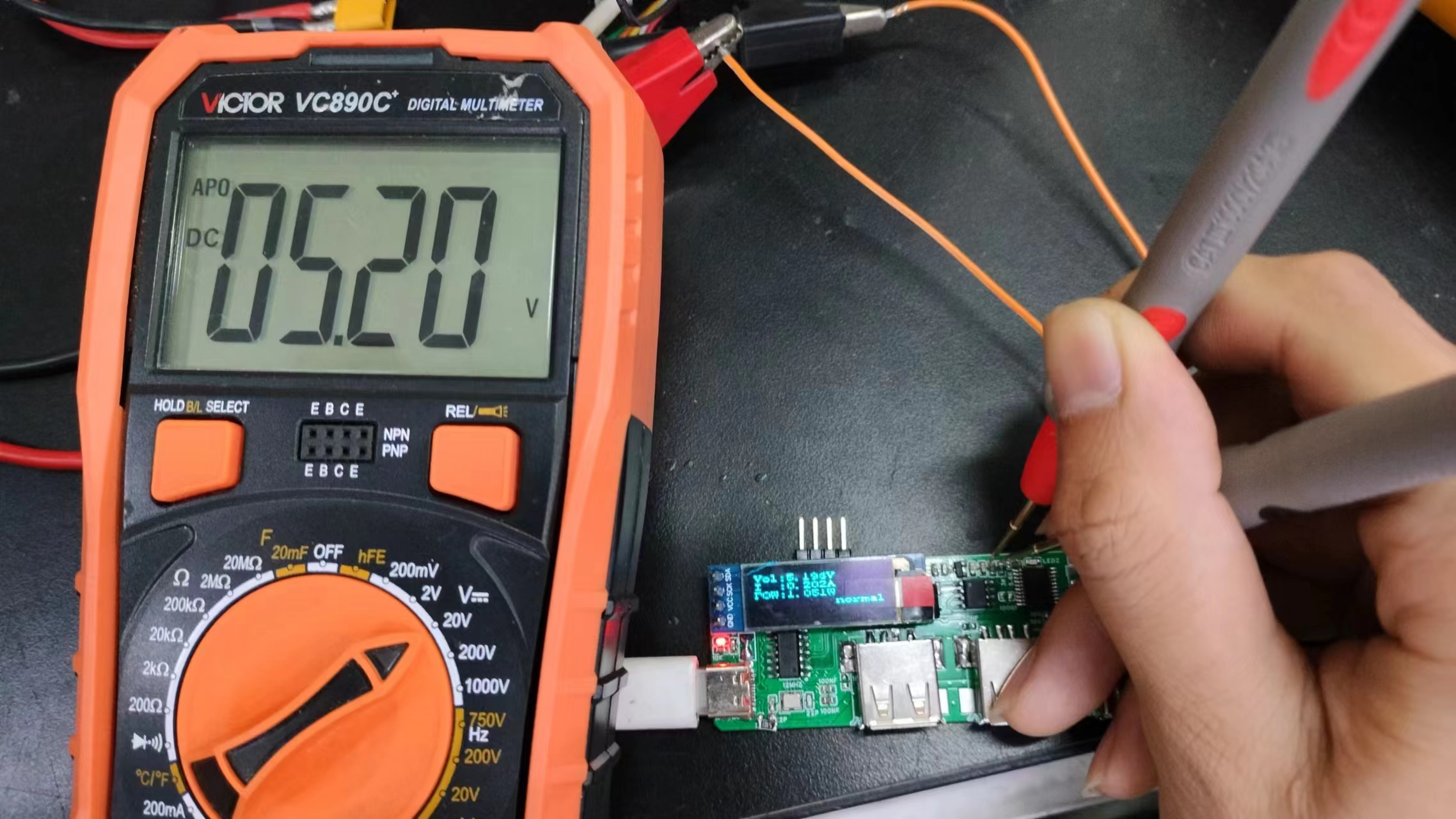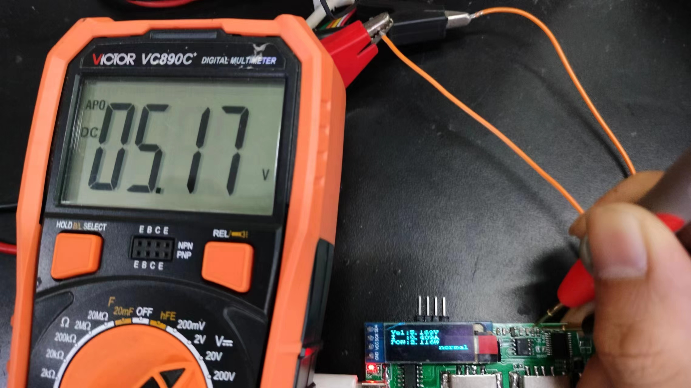 然观察到oled上的电流显示是0.095A(请忽略万用表的读数)