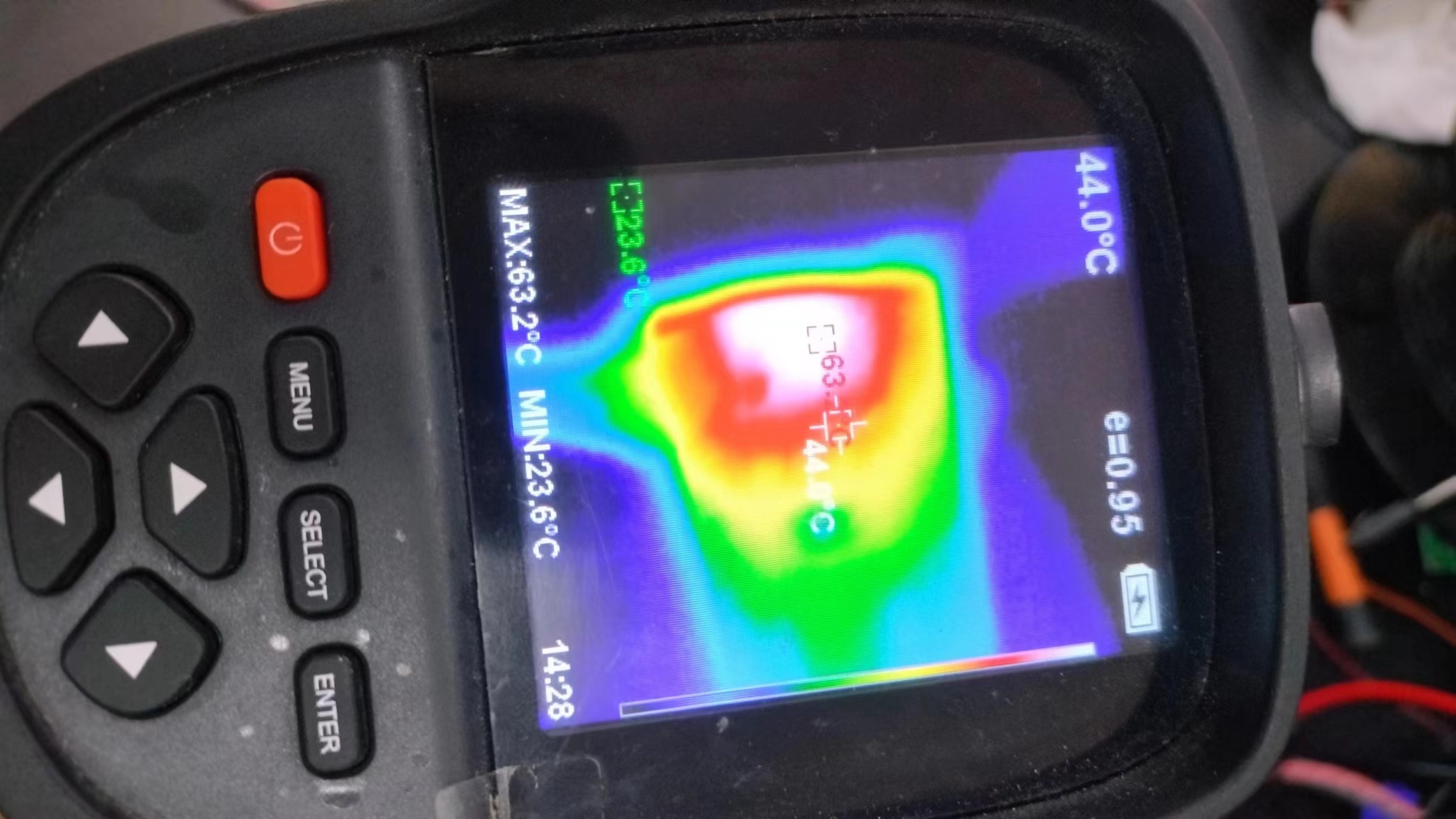首先测试板子的发热,以下是空载工作10分钟的热成像图,温度大约32摄氏度