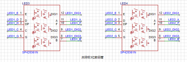 本电路使用共阴极数码管。