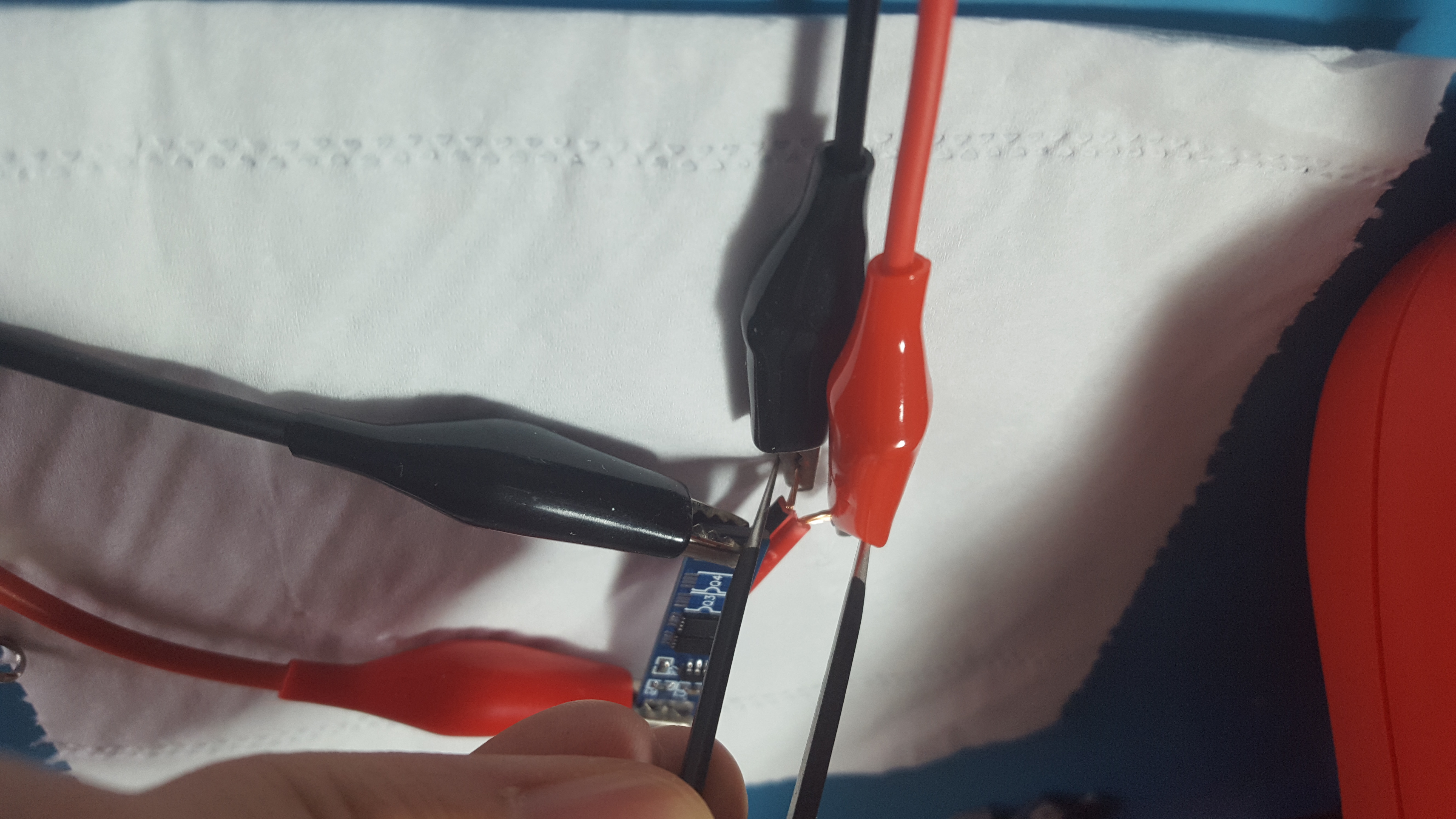 使用可调电源在B+/B-供电3.7V,MOS导通,在P+/P-有3.7V电压