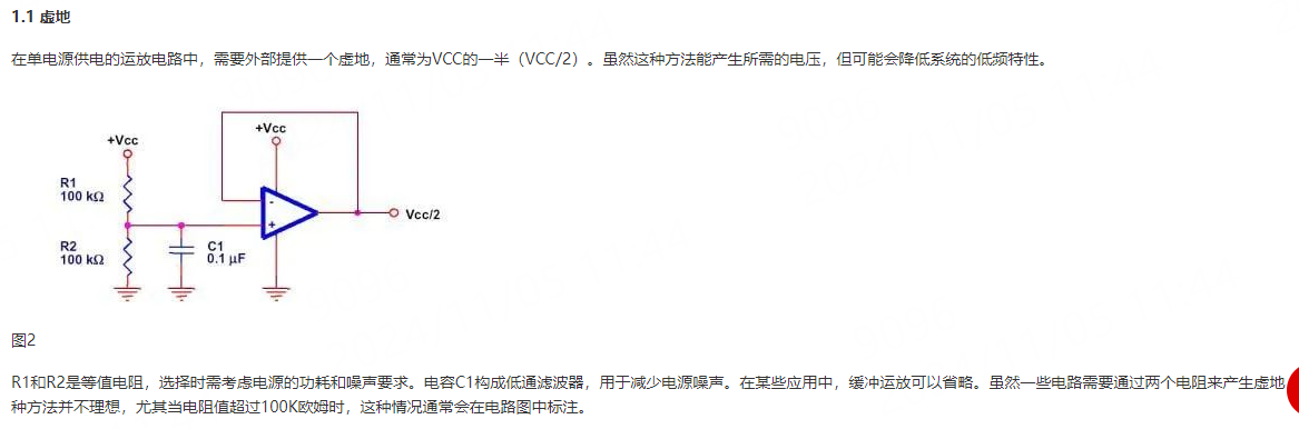 由于是使用单电源供电,那运放需要一个虚地来抬高输出电压。