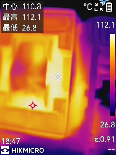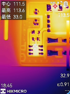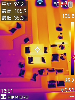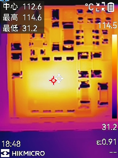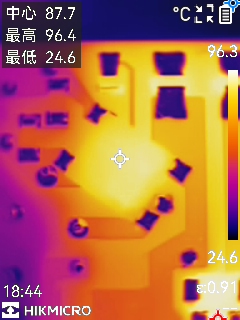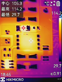 这个是氮化镓功率管的温升,小板整体的温升也较均衡。