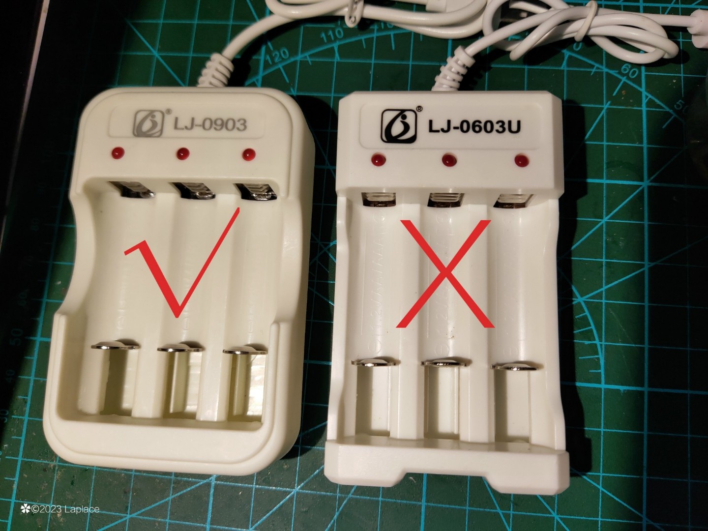 PS:上面链接里的充电器实际上可能会有两种混着发,外包装一样但里面充电器外形不一样,本项目只适配下图左边这种,并不适合右边的