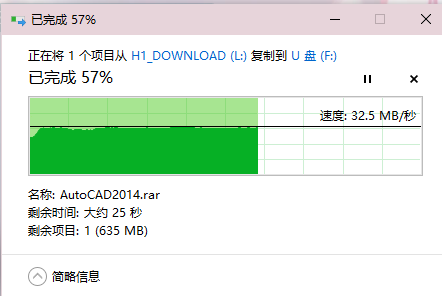下图是usb传输autocad安装包,速度还行啊。