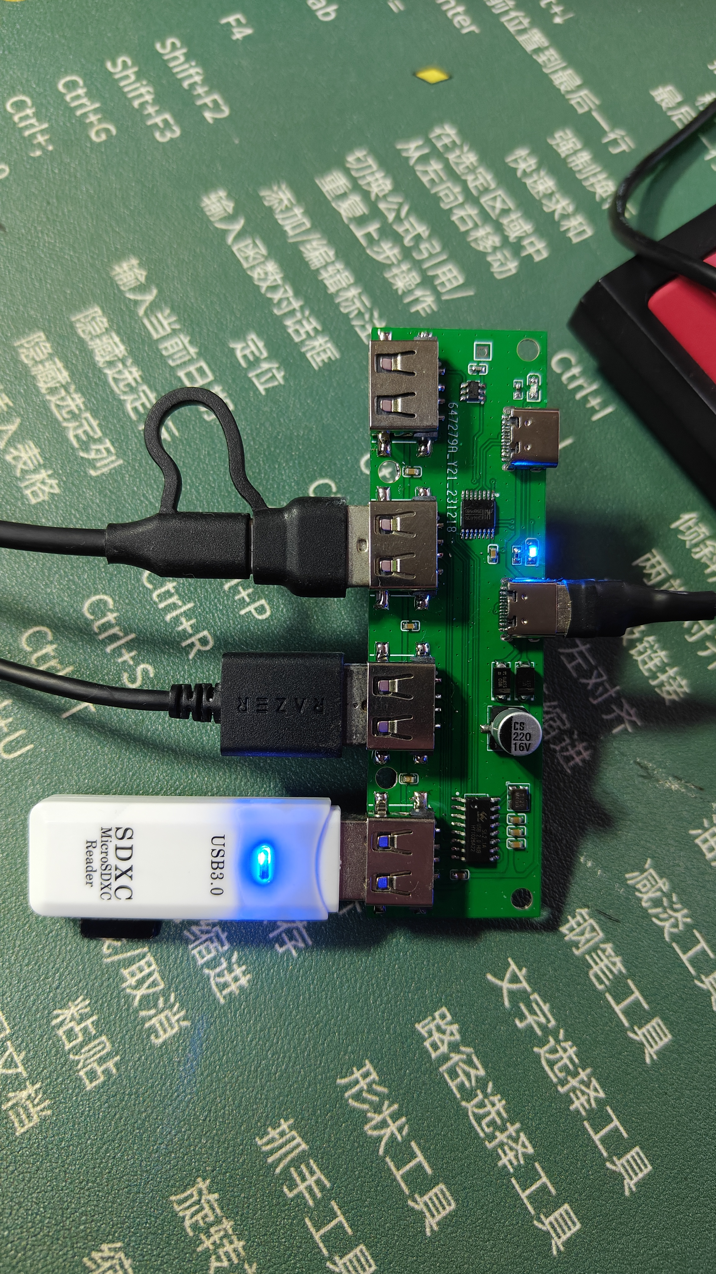 双typec 输入,用了一个sl2.1A拓展了4个usba口用,不推荐大电流使用,键鼠普通u盘用都没问题。