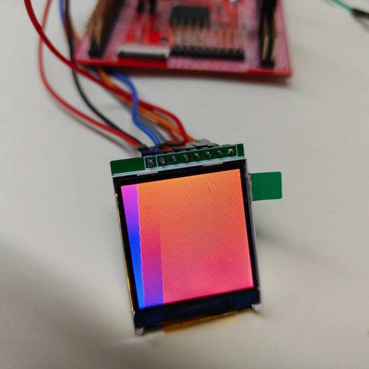 老五家 ST7735 1.44寸 彩屏 128*128,示例代码和接线图都有。 代码参考网上的,用STM32F405开发板点的。 使用硬件SPI,如果使用模拟的话就改一个写入spi数据那块就行了。